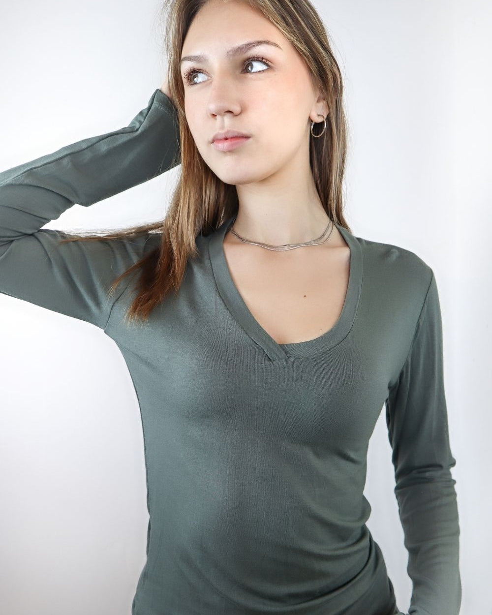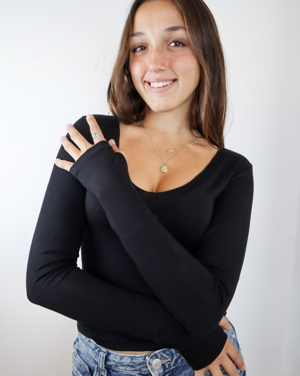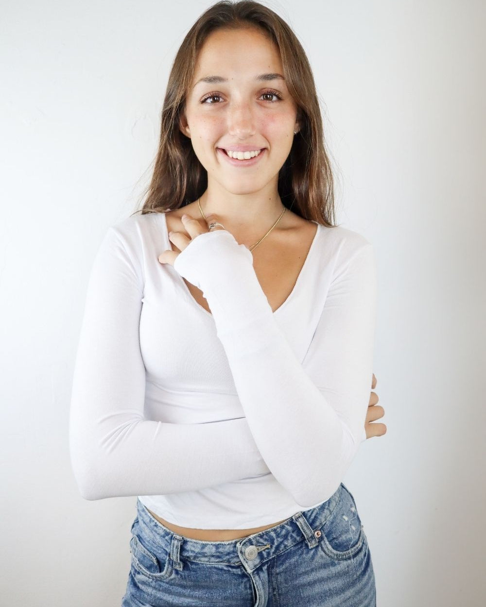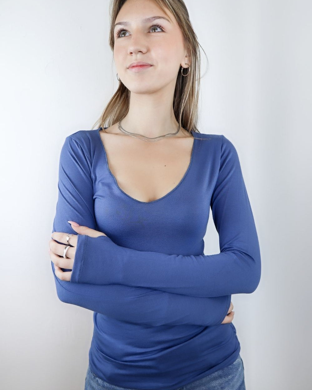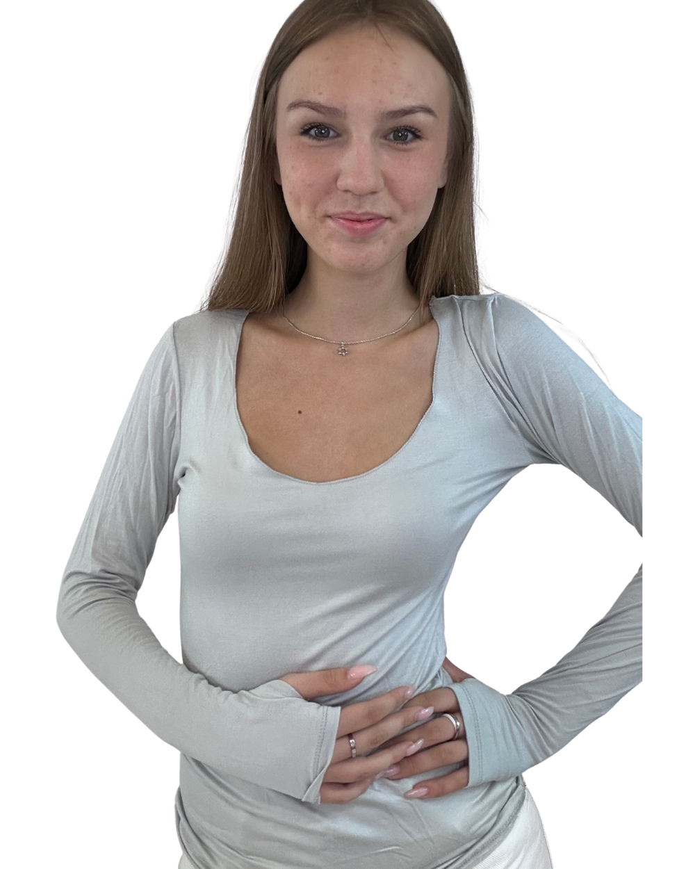 וי גזור קצרה במותן שרוול ארוך עם כפפה