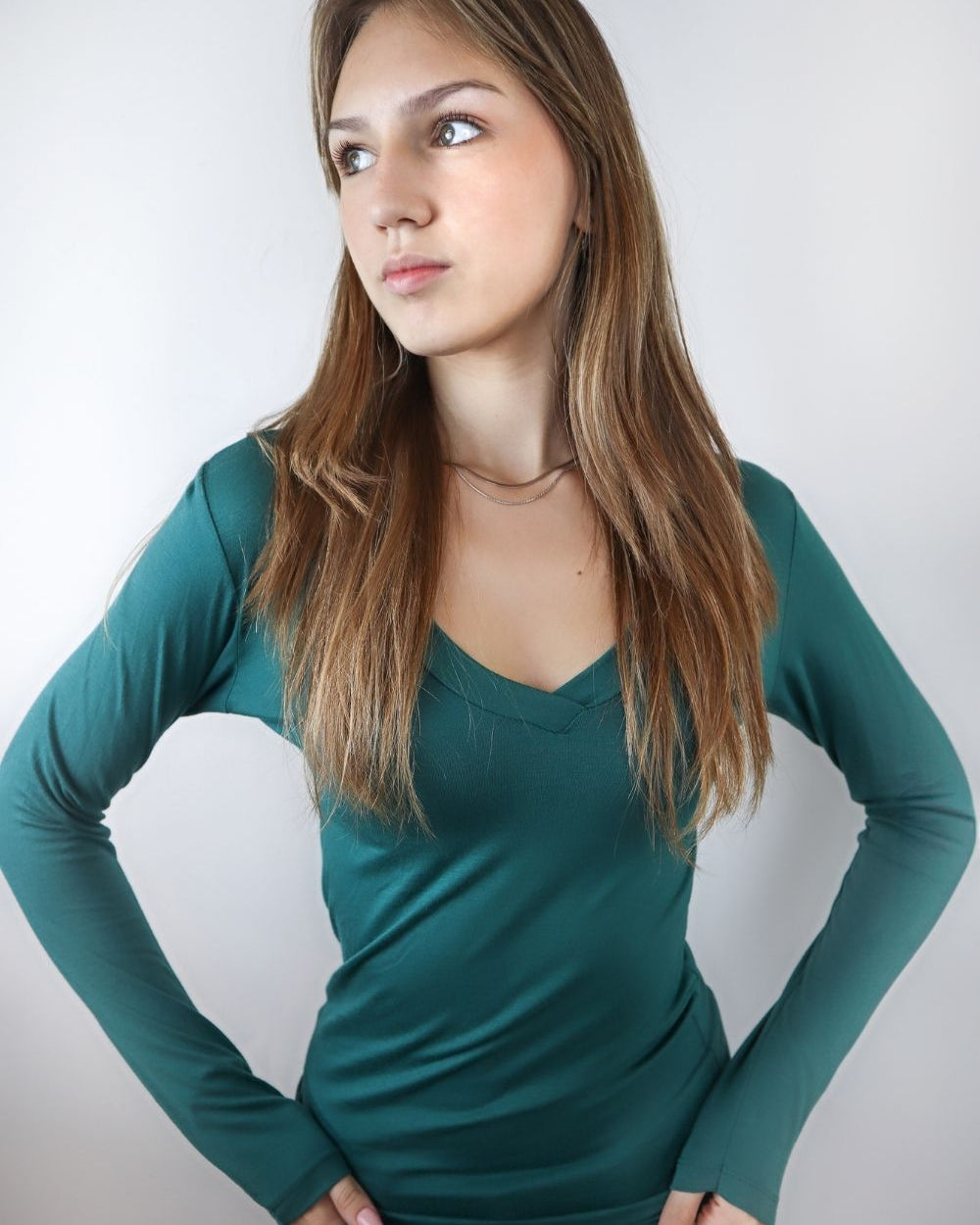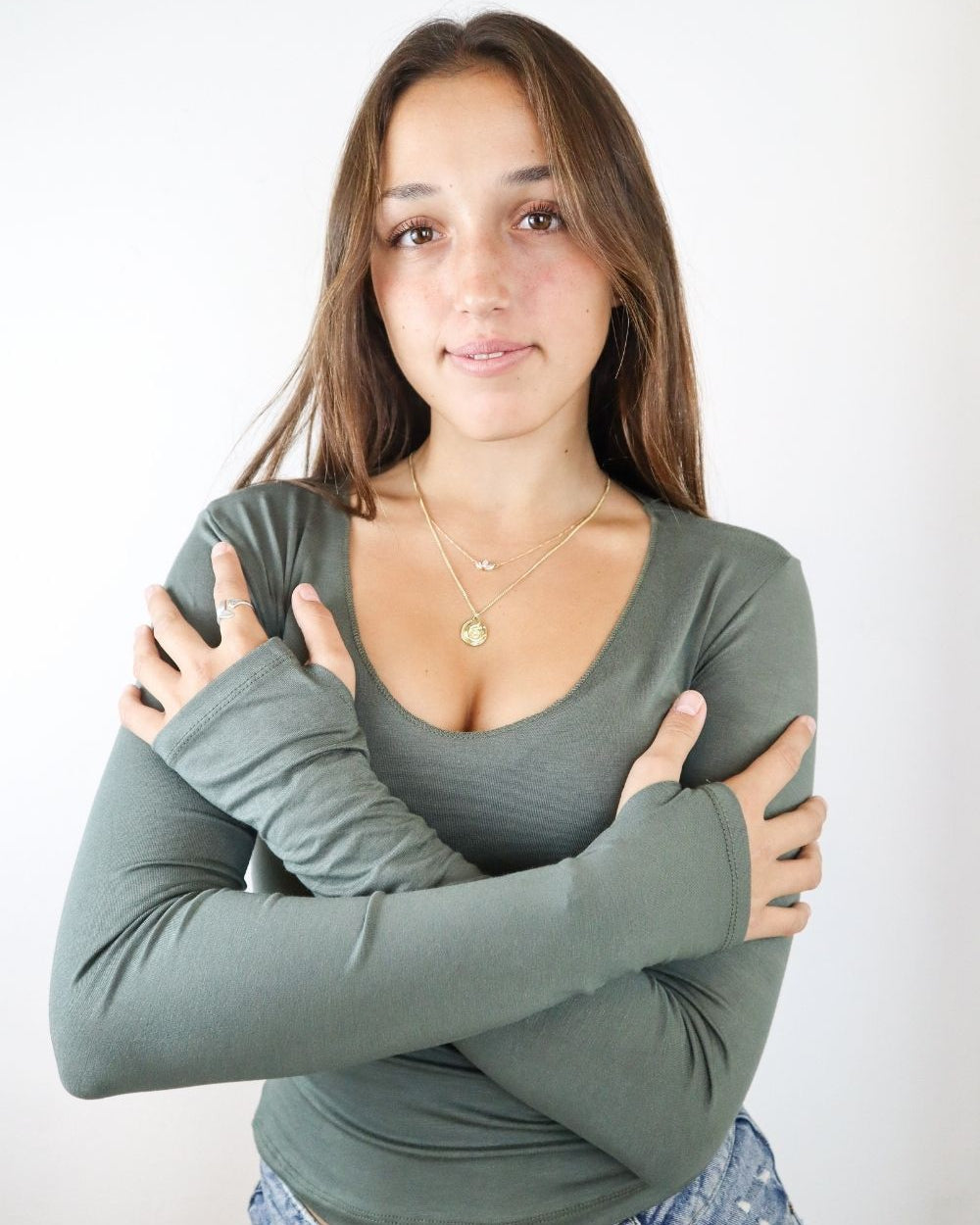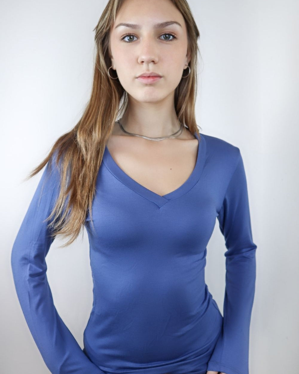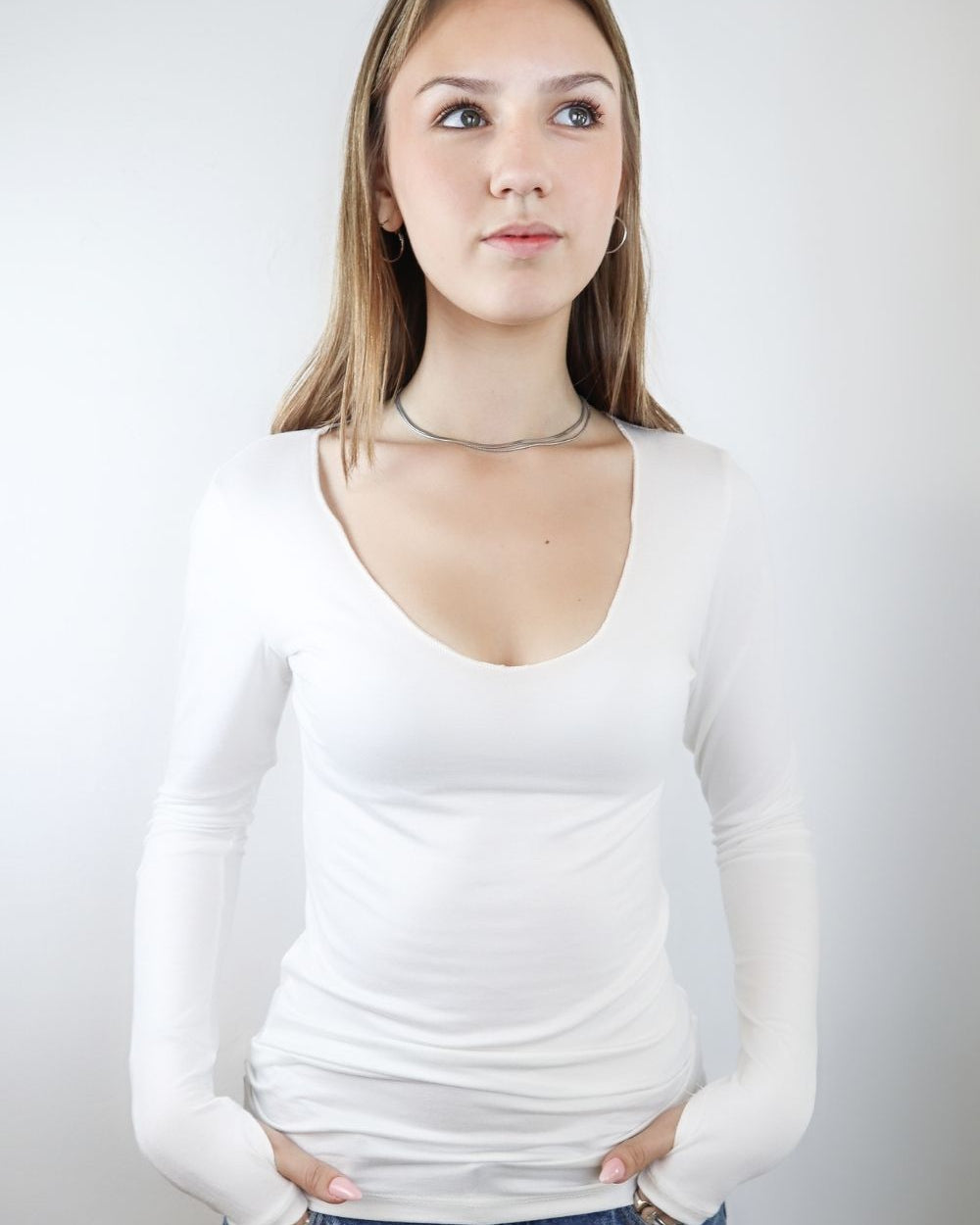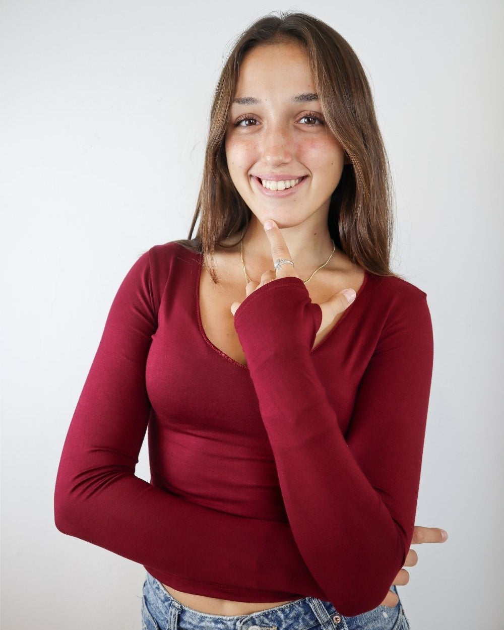 וי גזור קצרה במותן שרוול ארוך עם כפפה