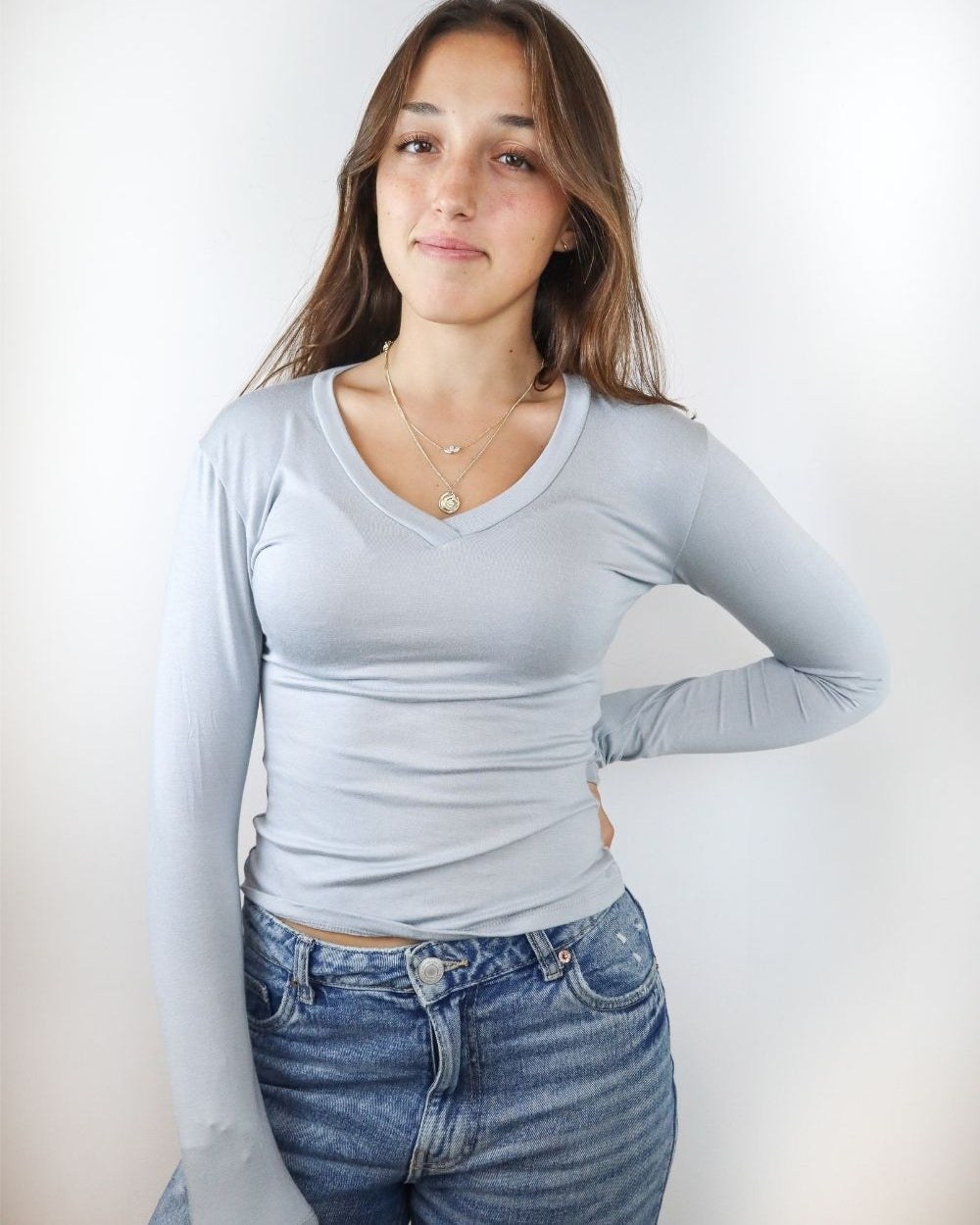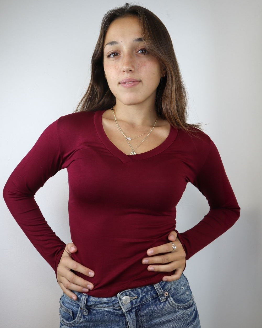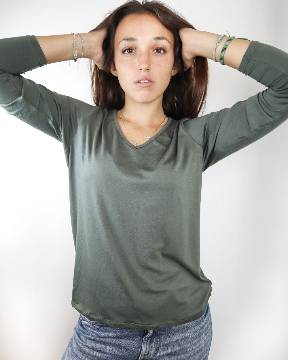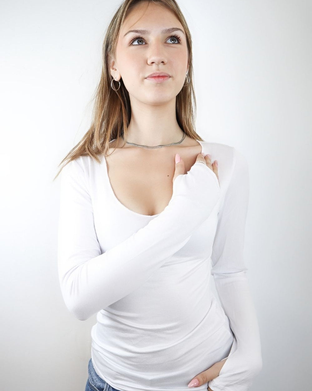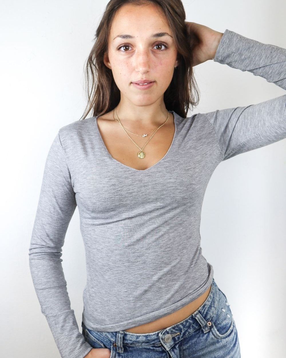 וי גזור קצרה במותן שרוול ארוך עם כפפה
