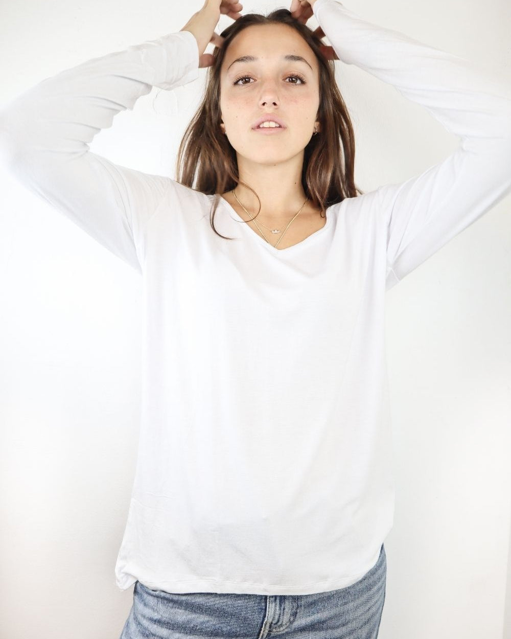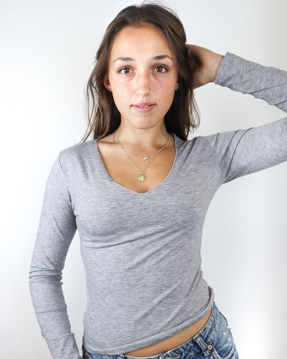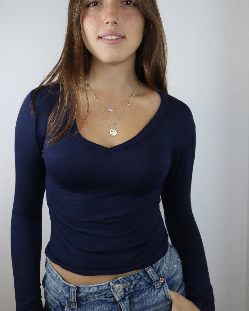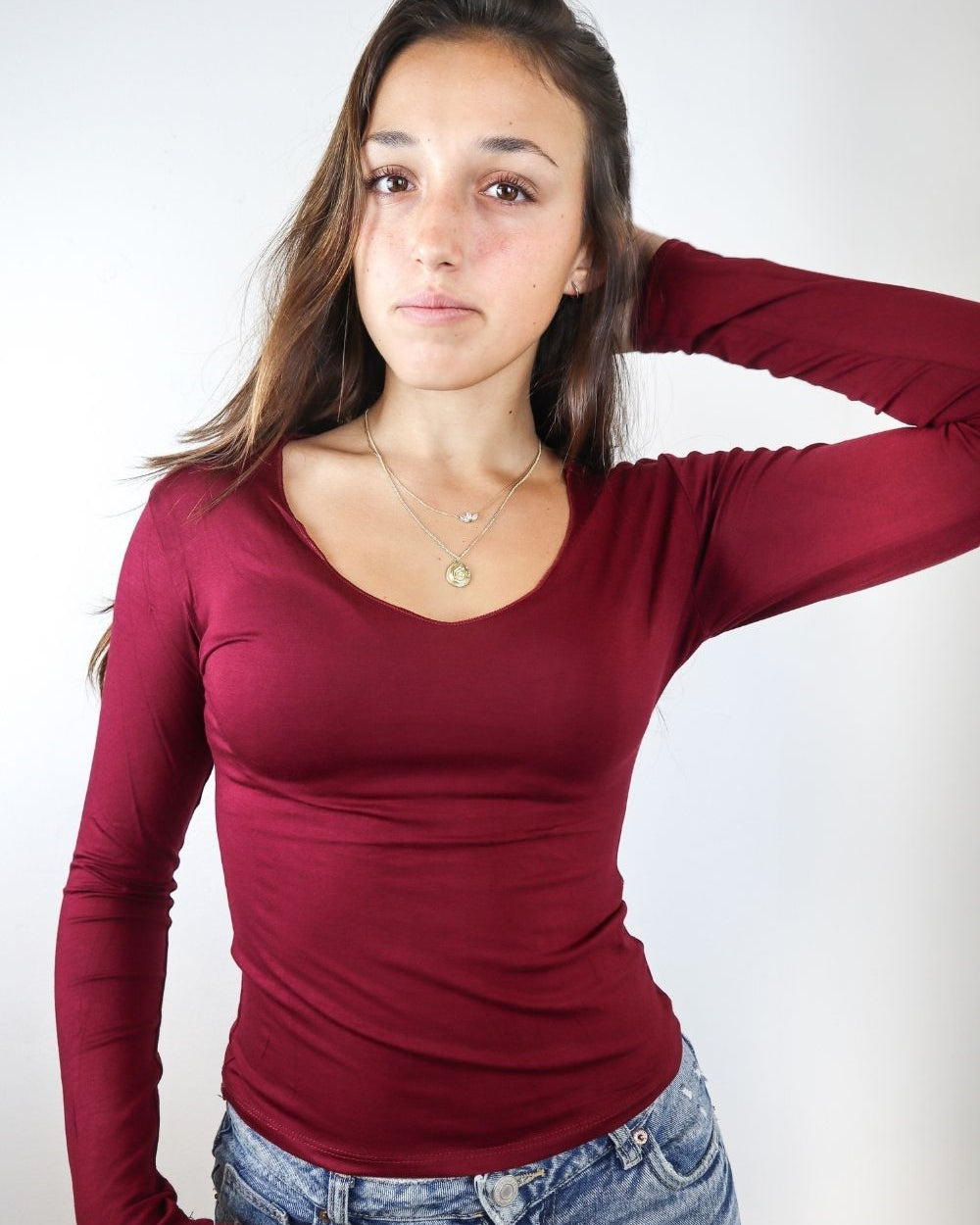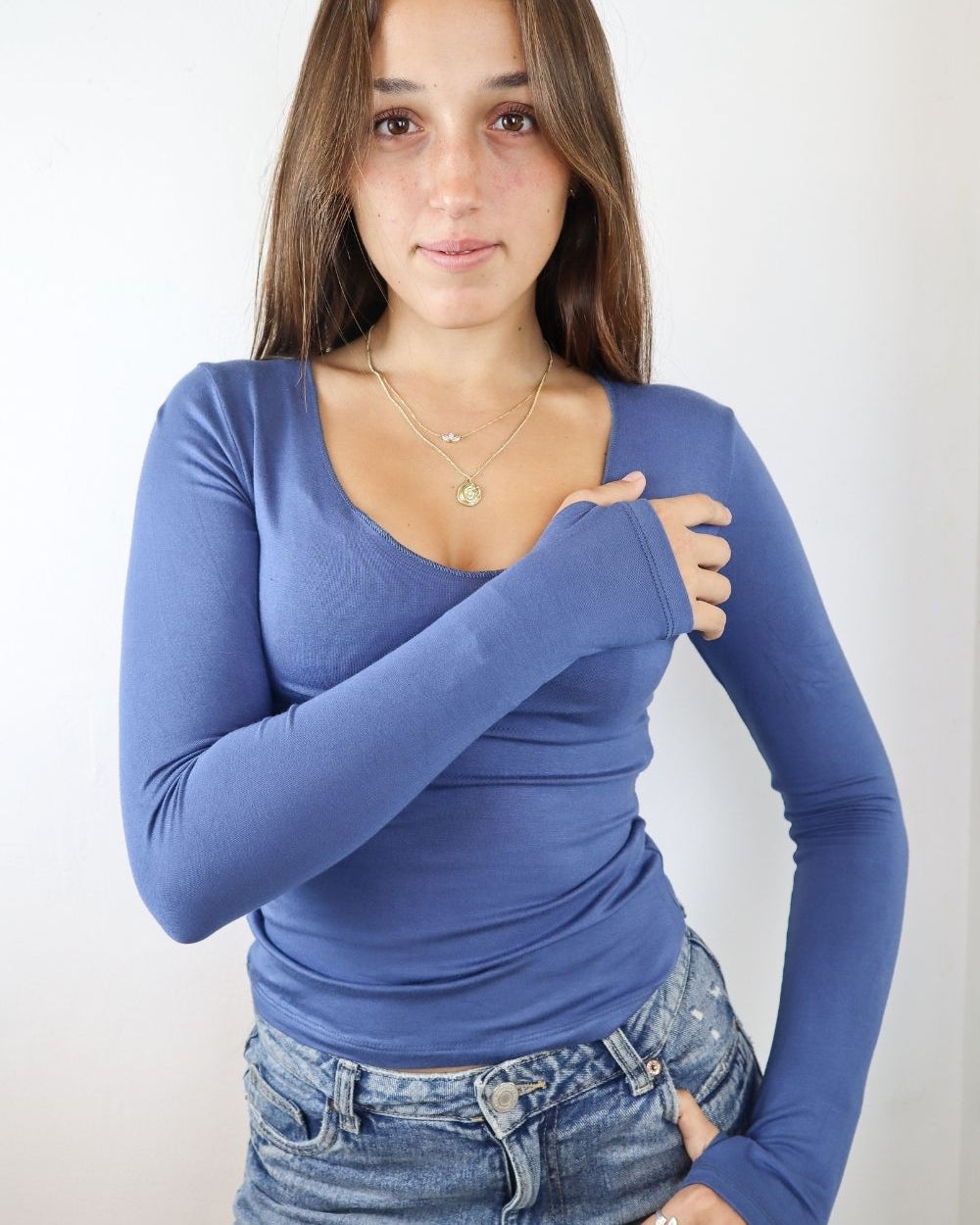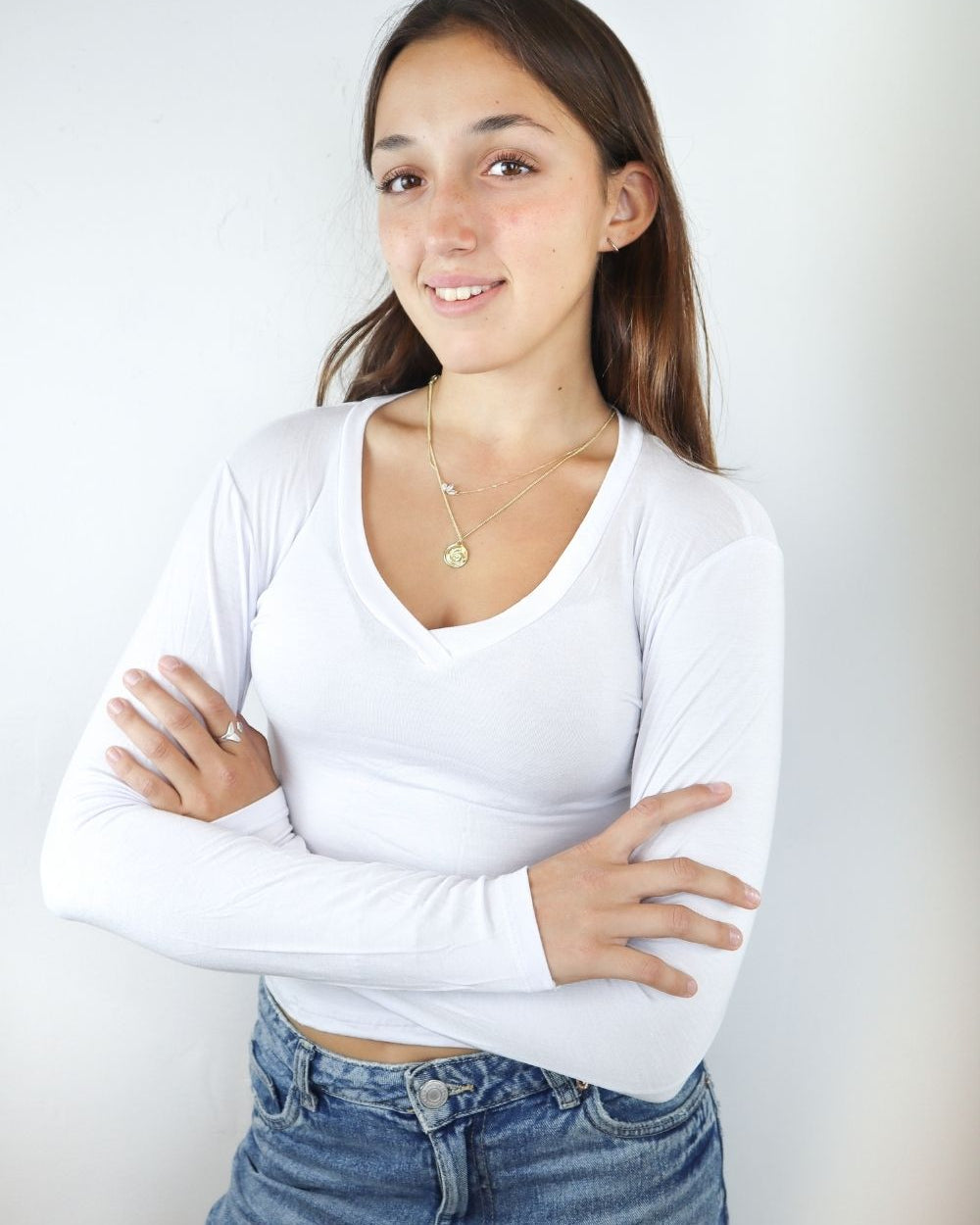 וי גזור קצרה במותן שרוול ארוך עם כפפה