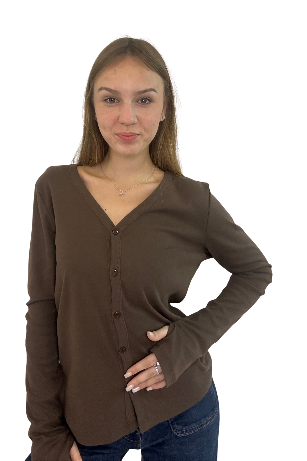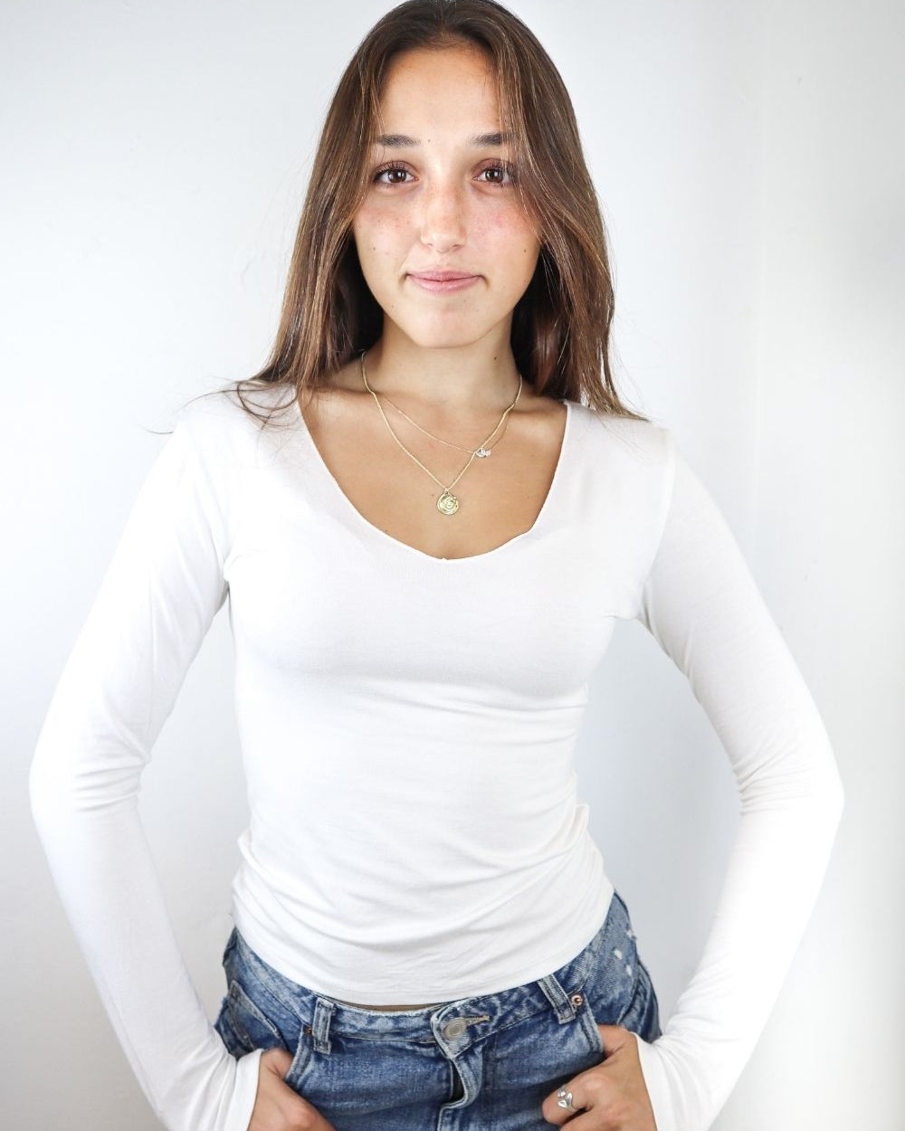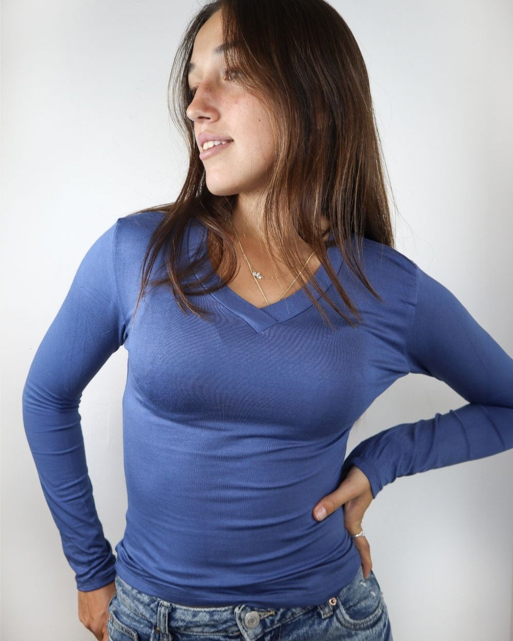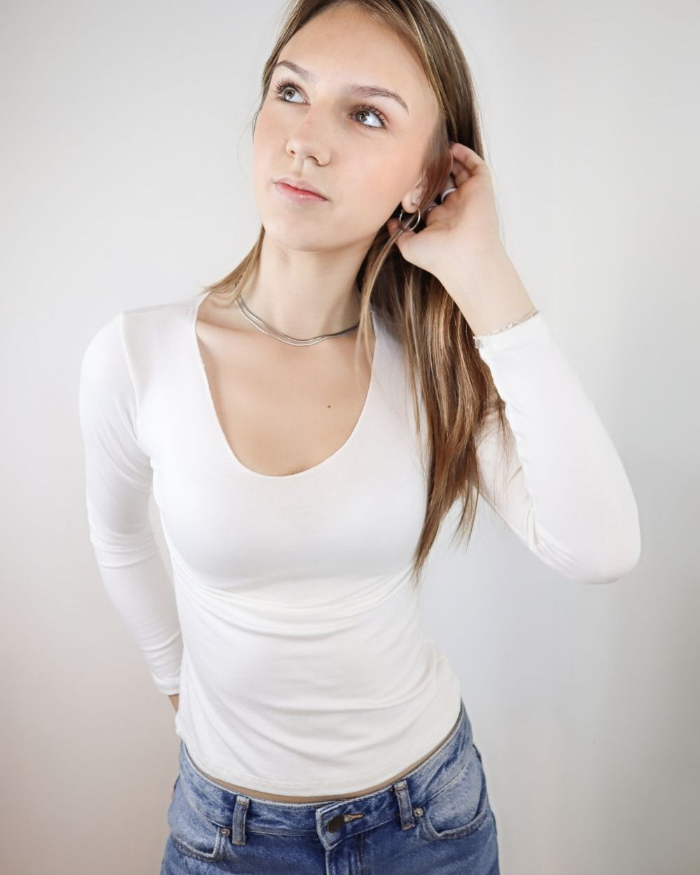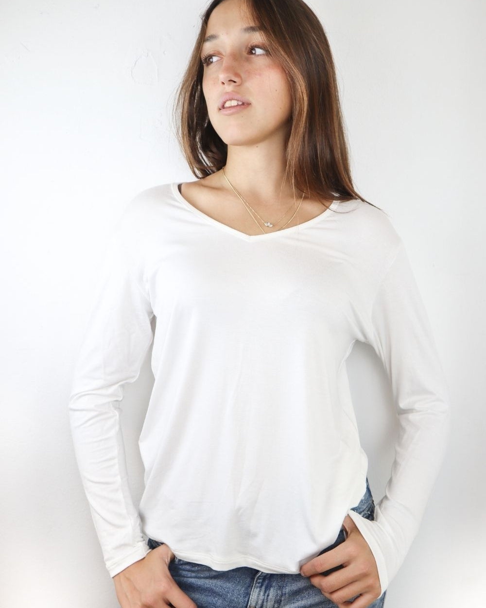 וי גזור קצרה במותן שרוול ארוך עם כפפה