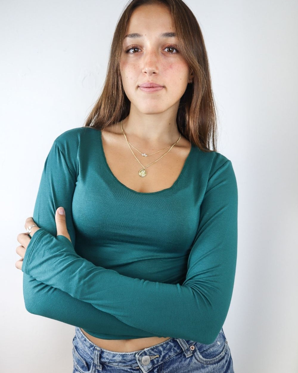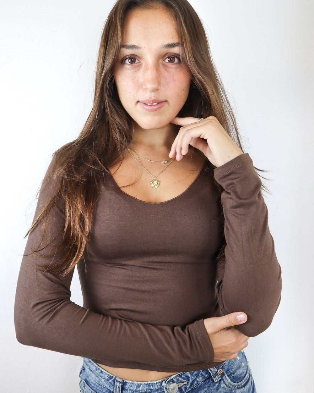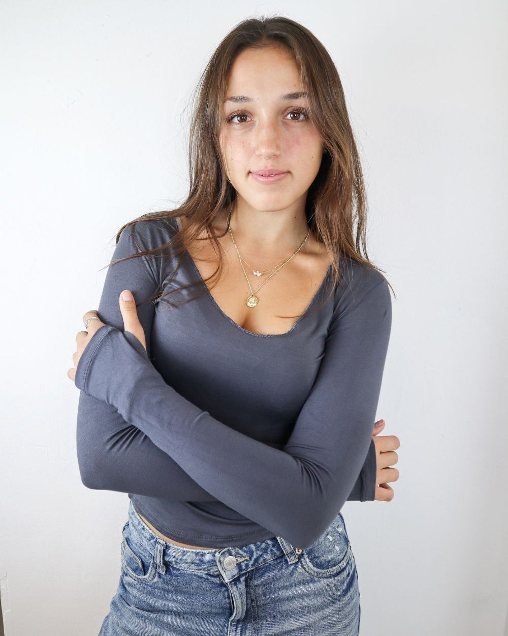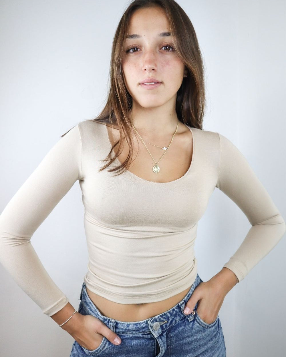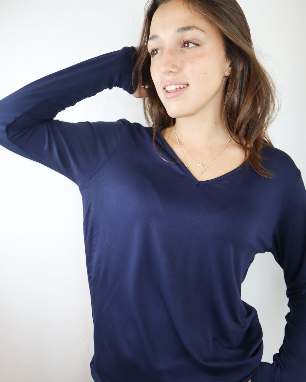 וי גזור קצרה במותן שרוול ארוך עם כפפה