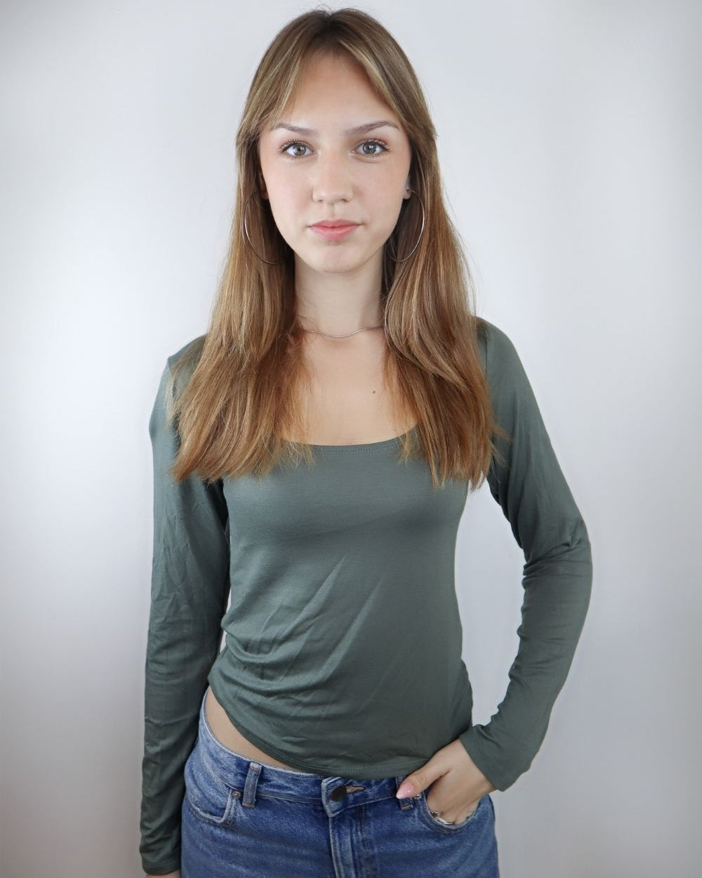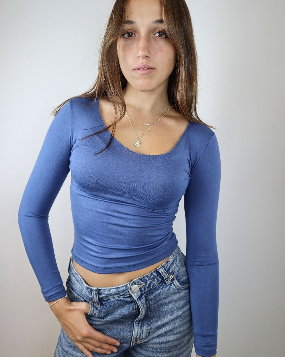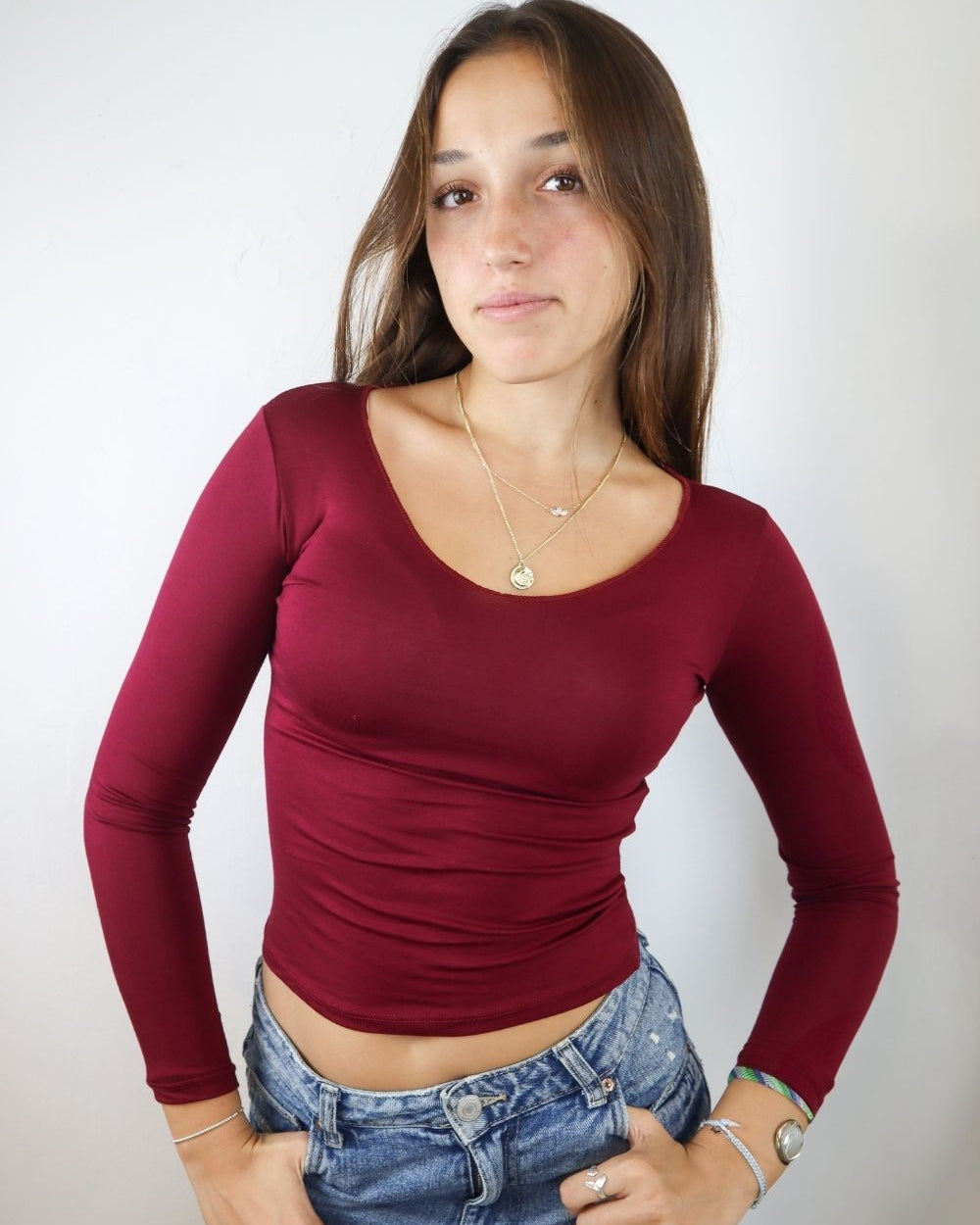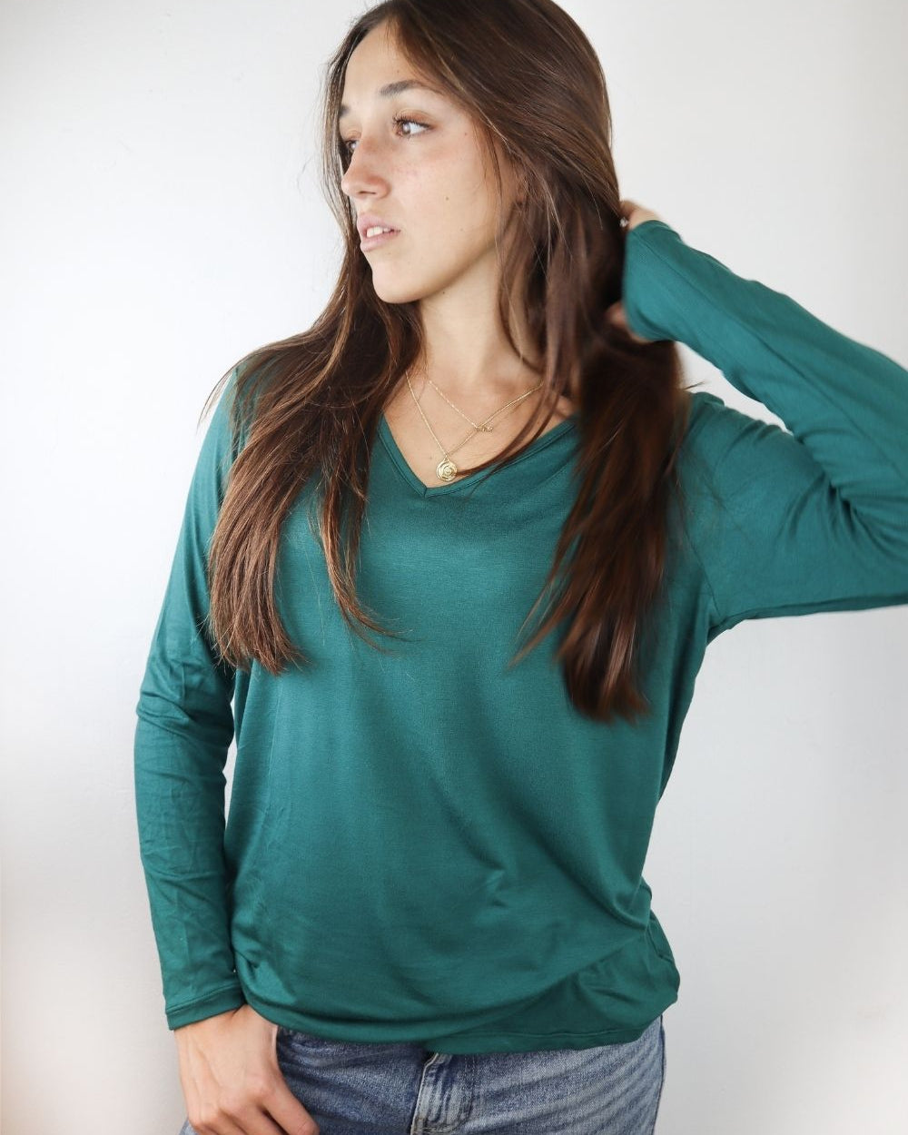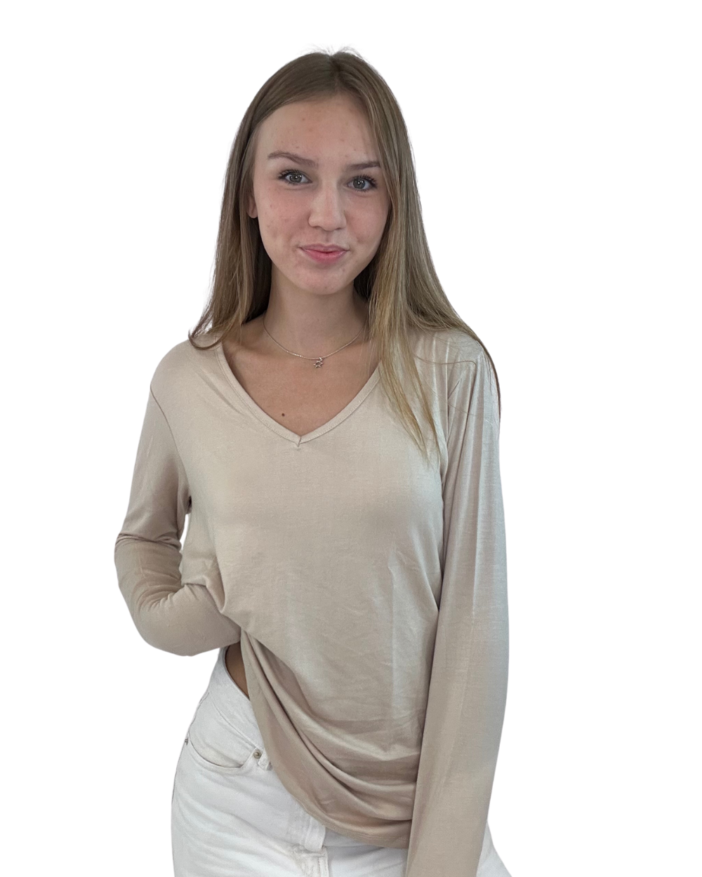 וי גזור קצרה במותן שרוול ארוך עם כפפה