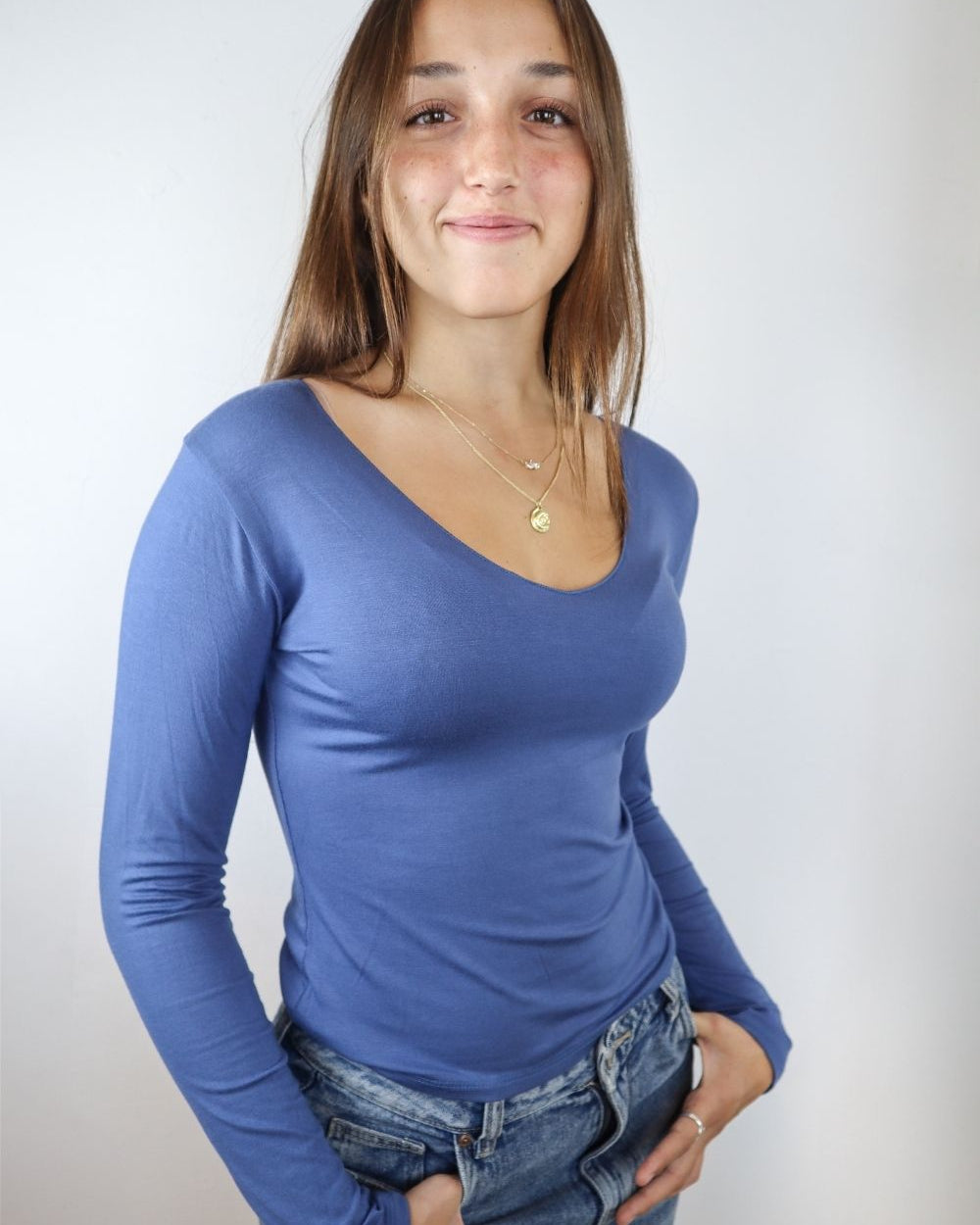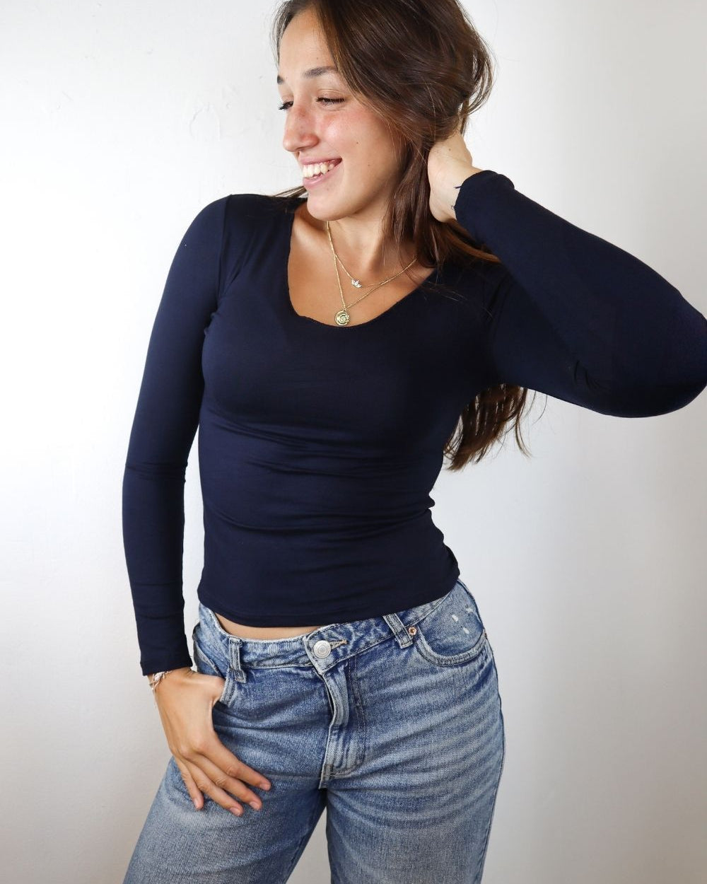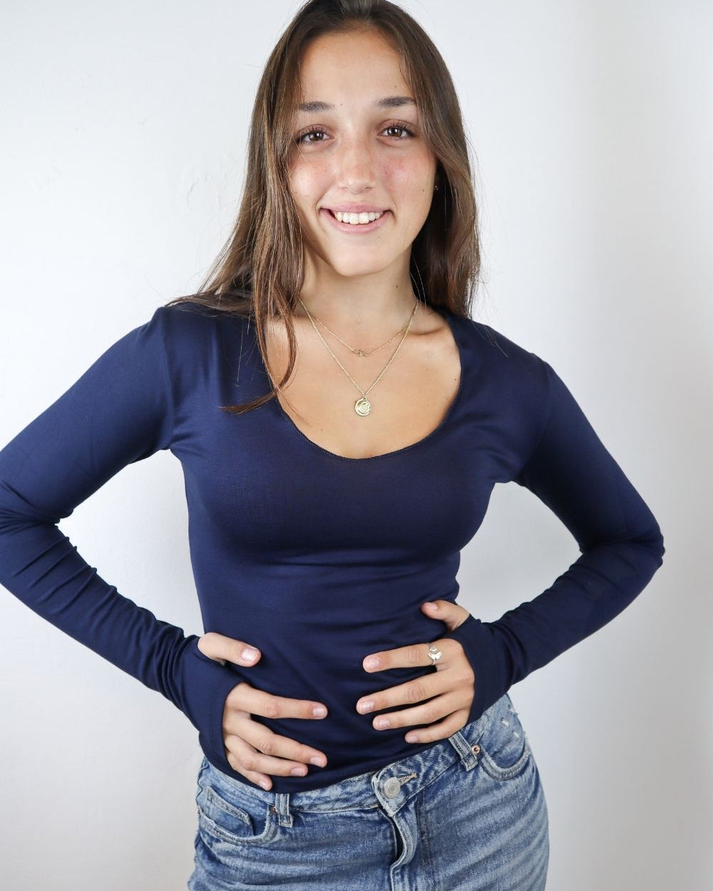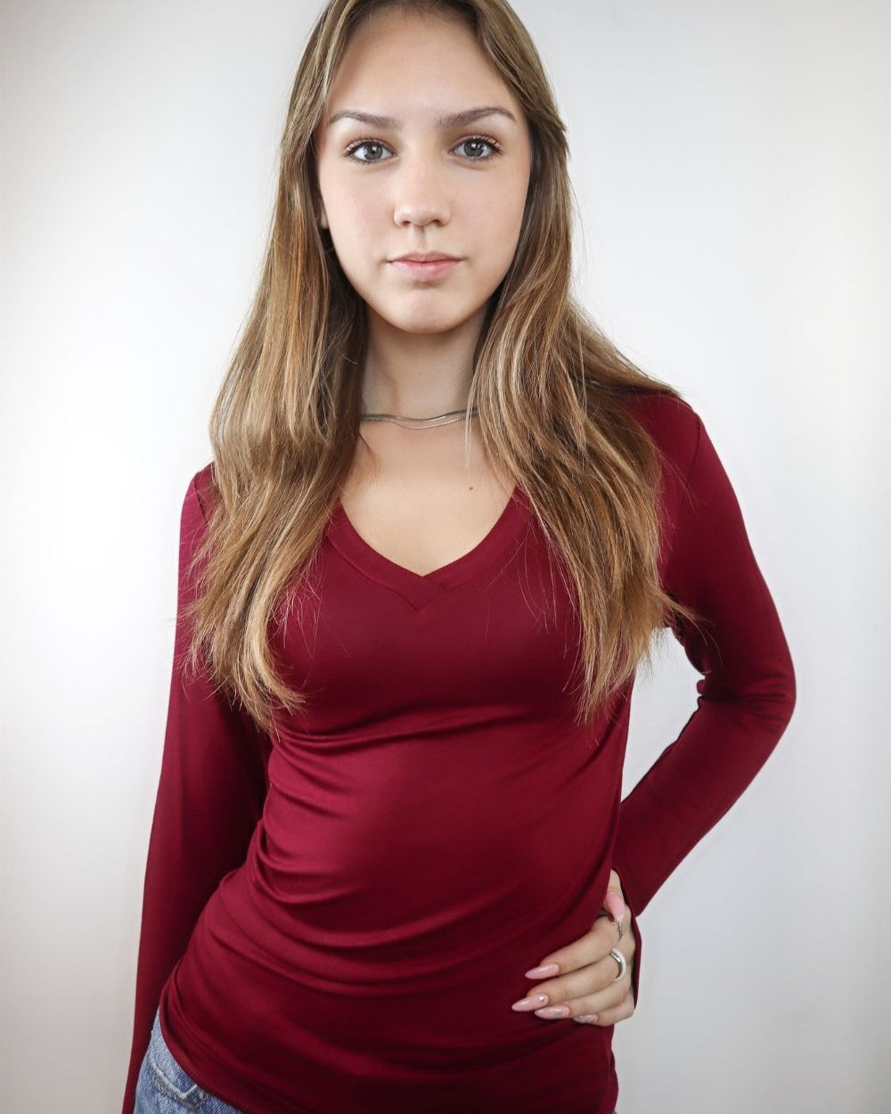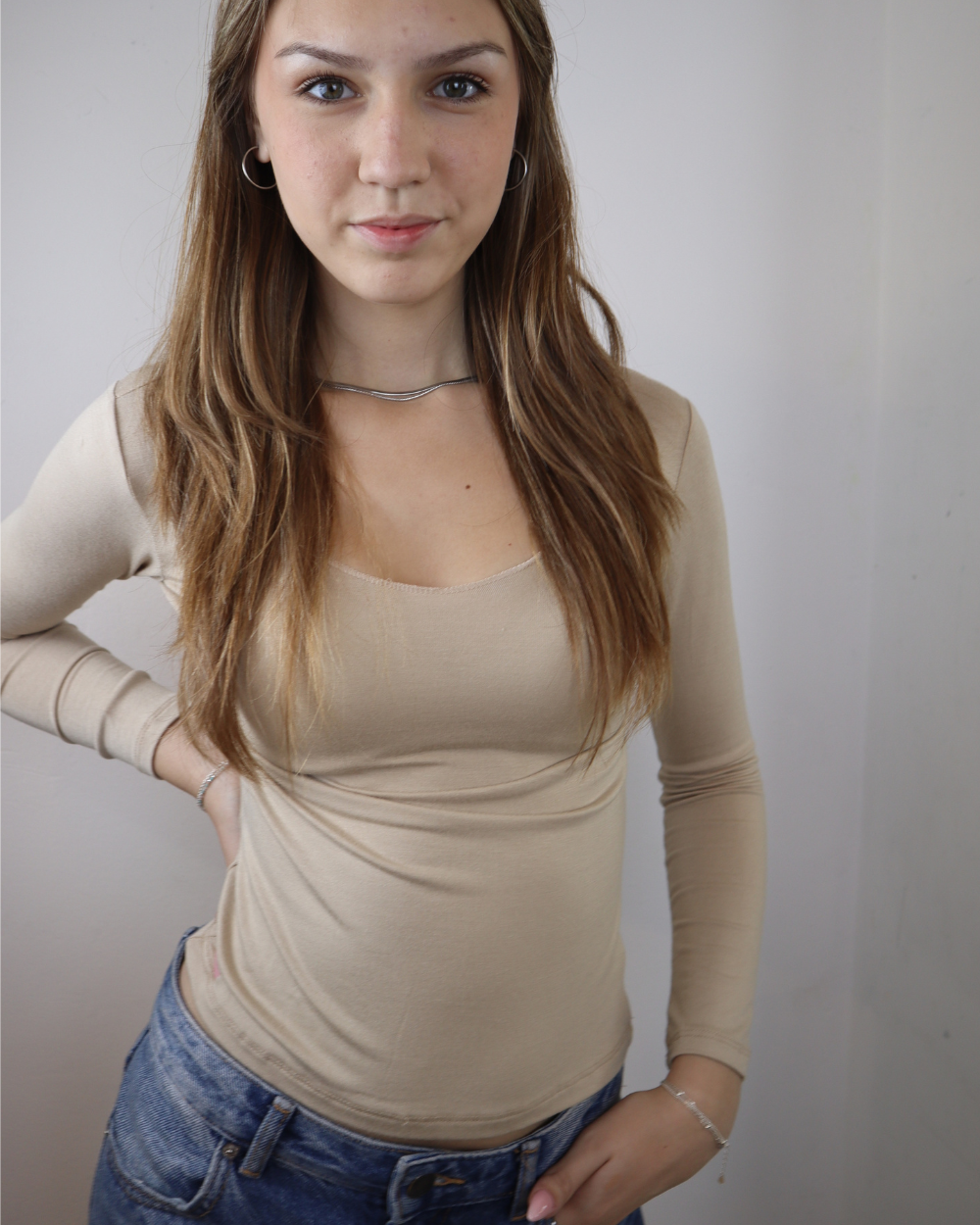 וי גזור קצרה במותן שרוול ארוך עם כפפה