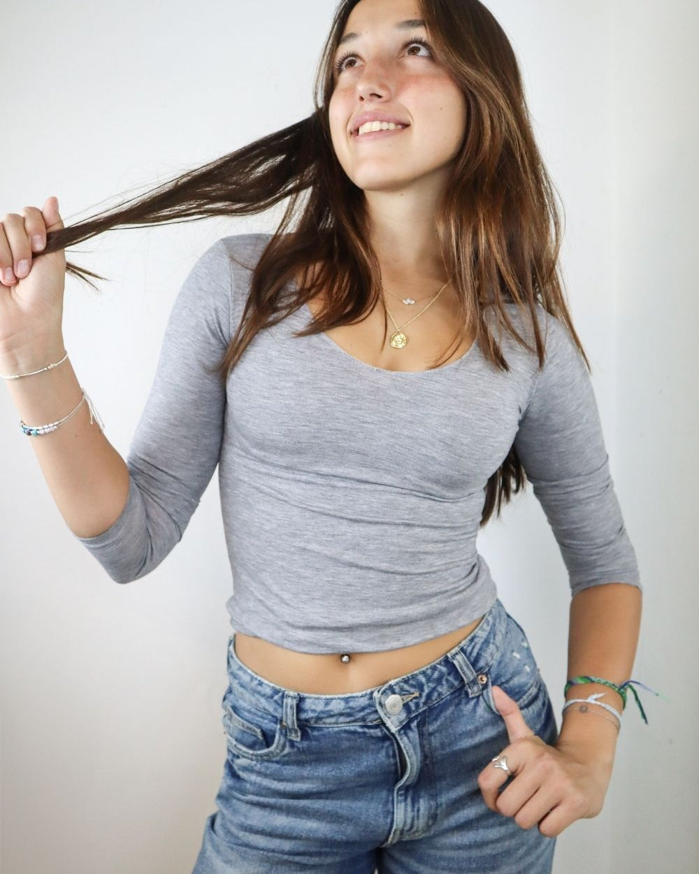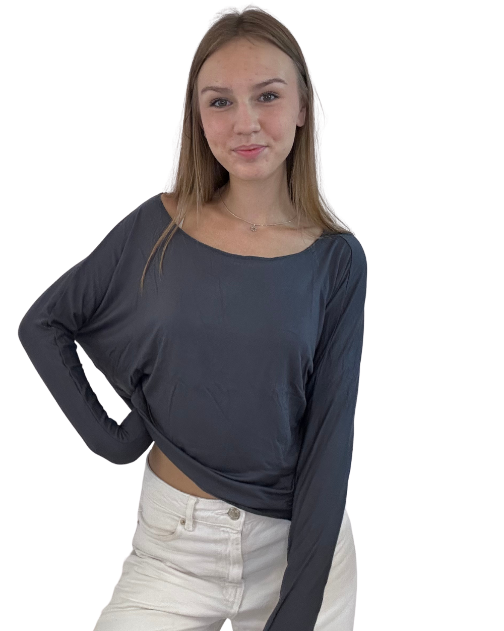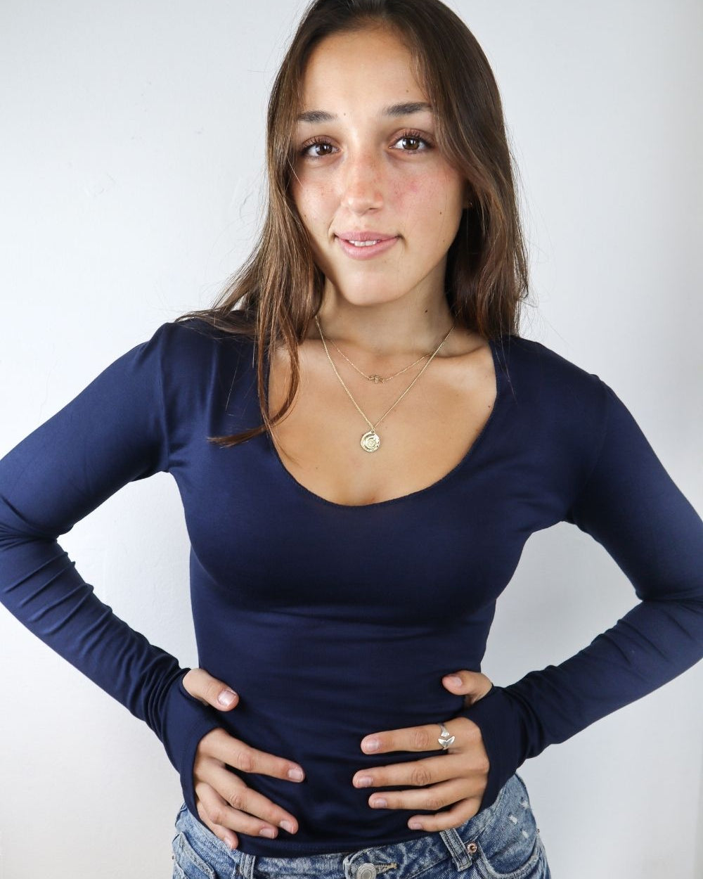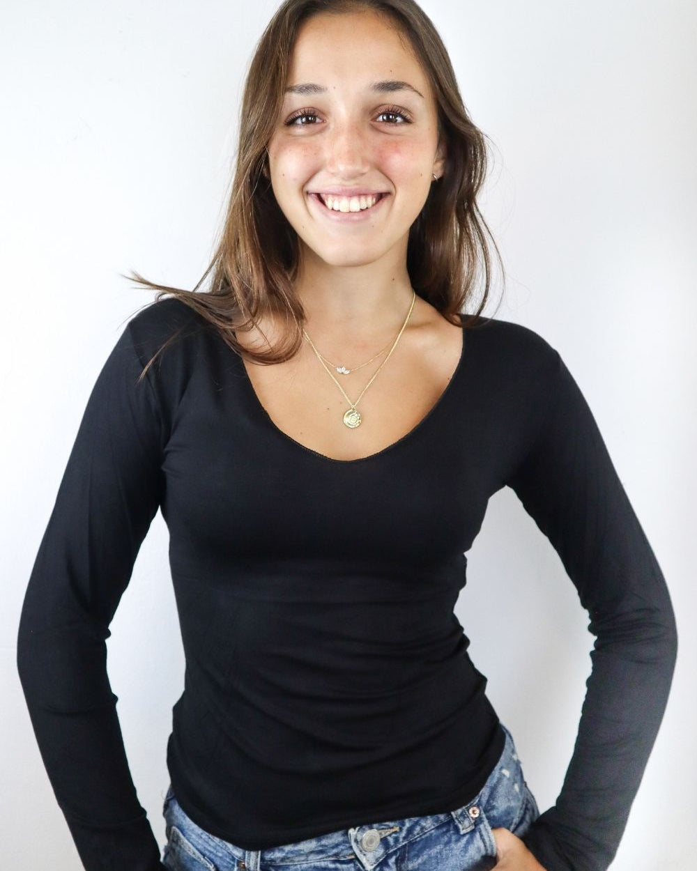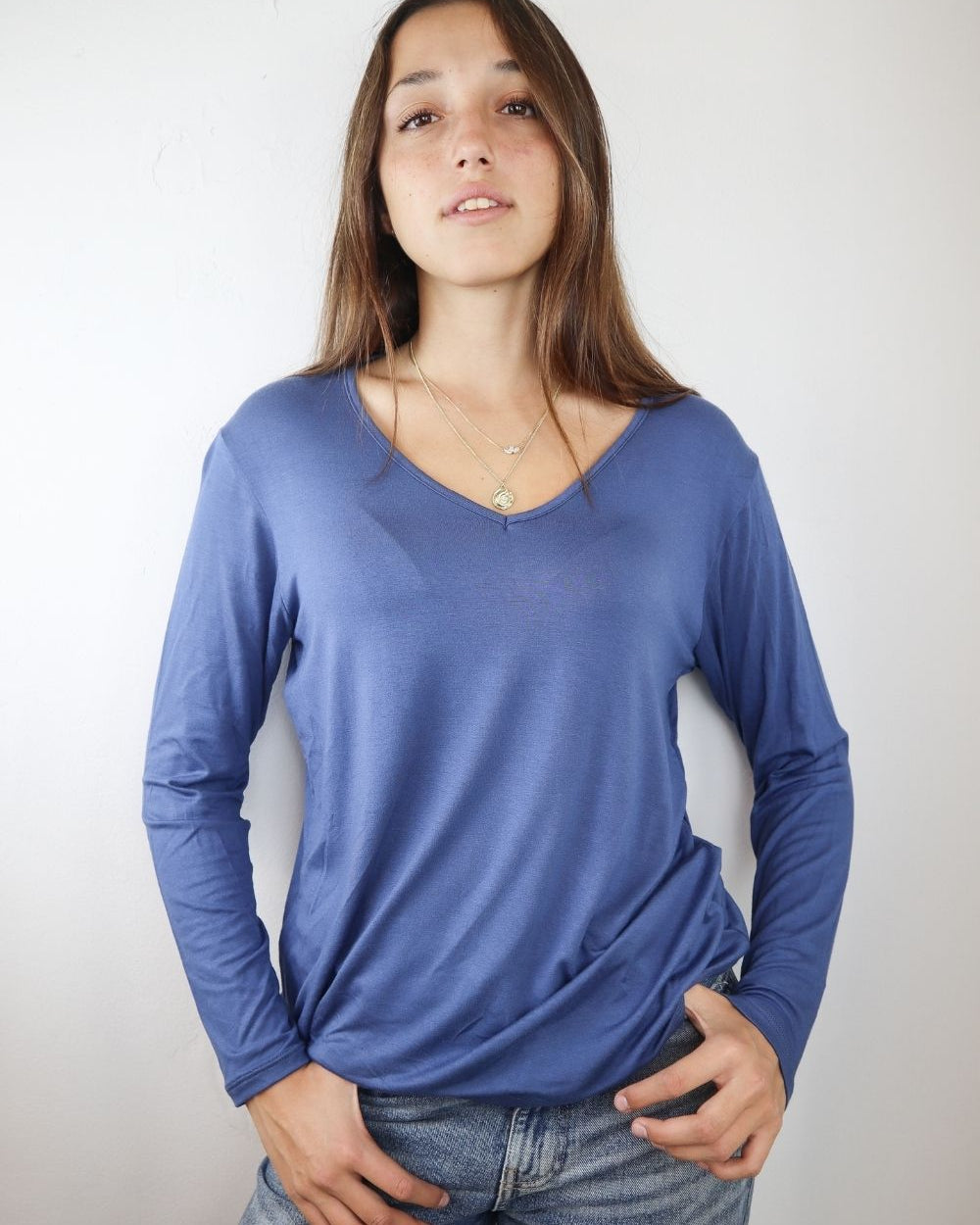 וי גזור קצרה במותן שרוול ארוך עם כפפה