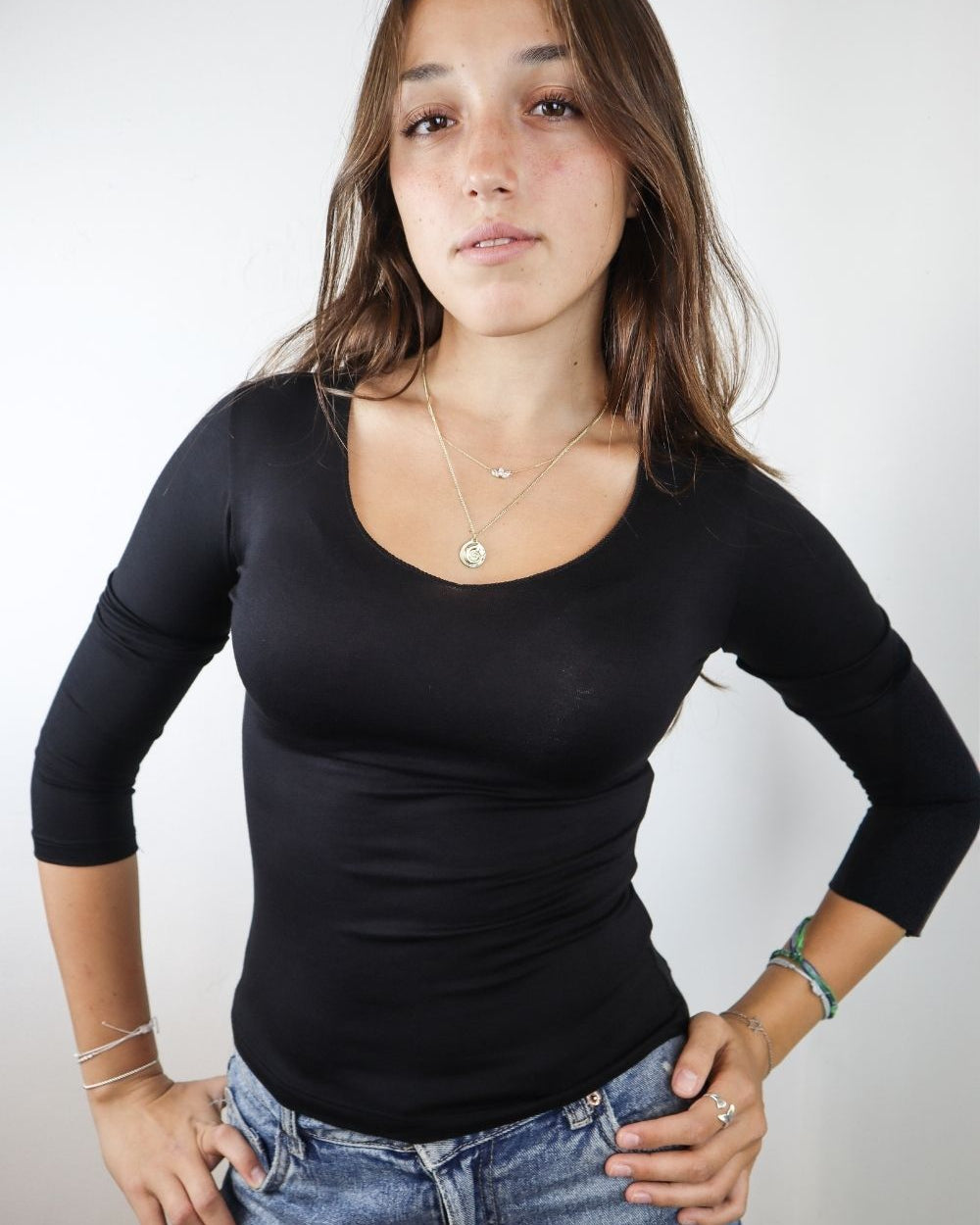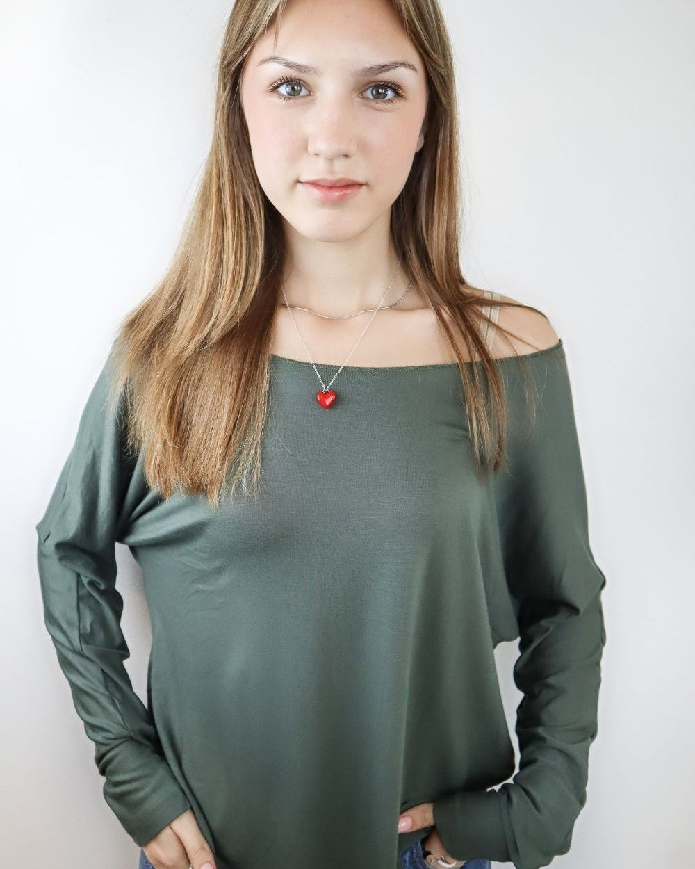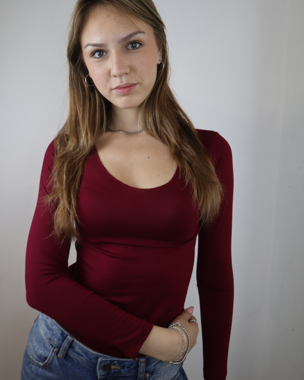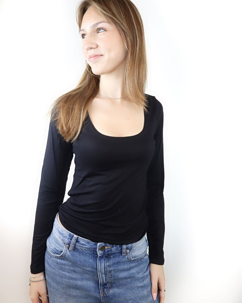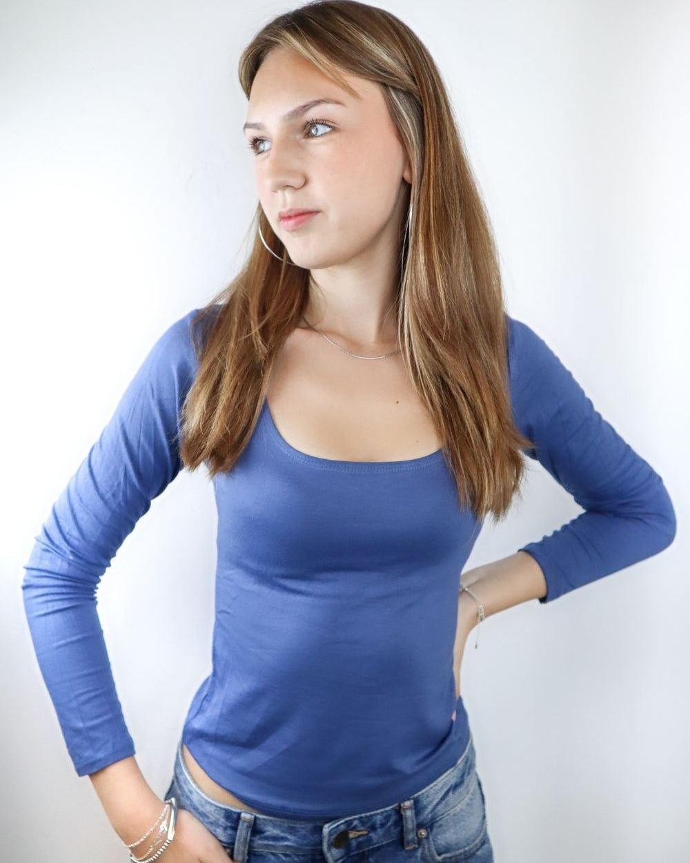 וי גזור קצרה במותן שרוול ארוך עם כפפה