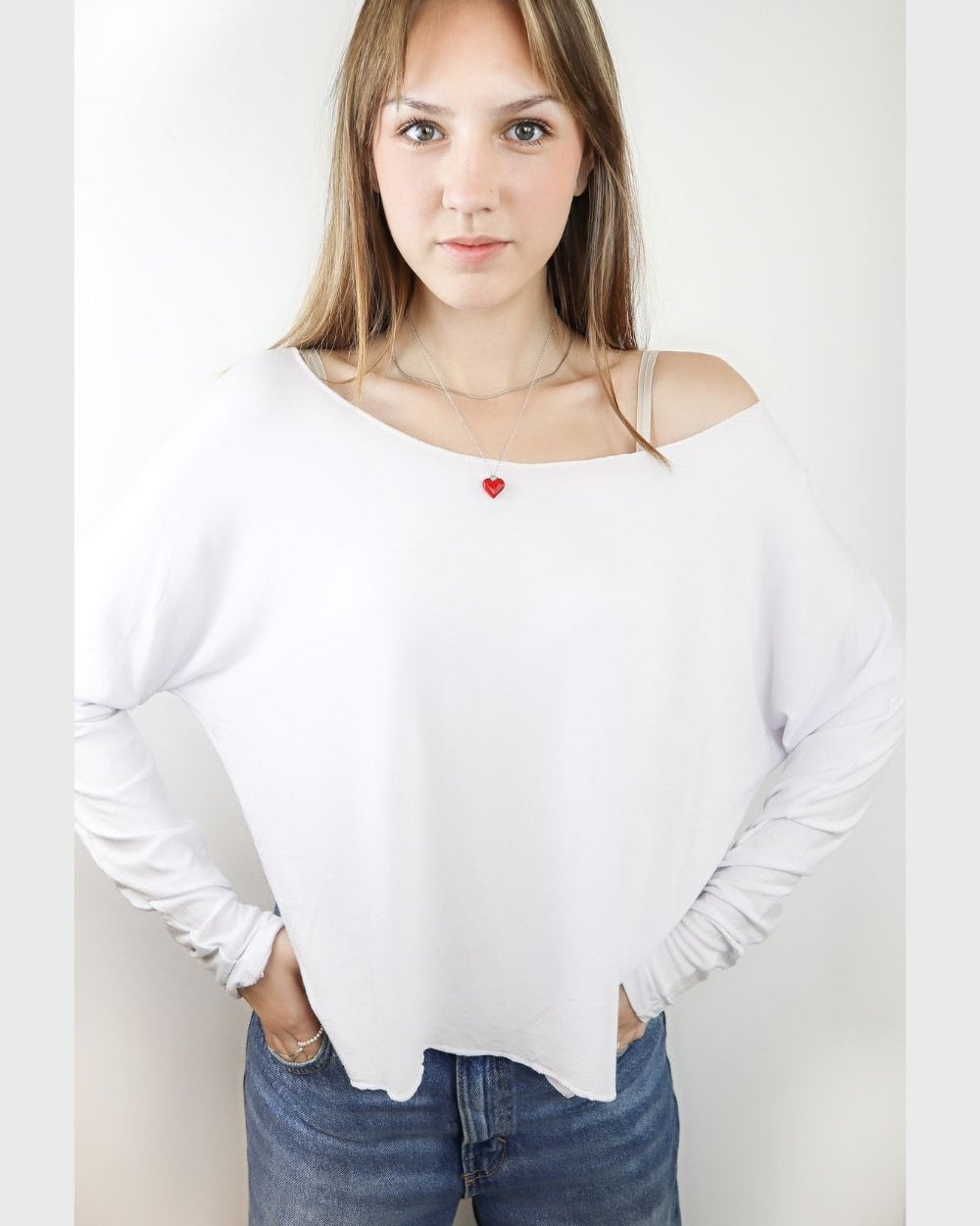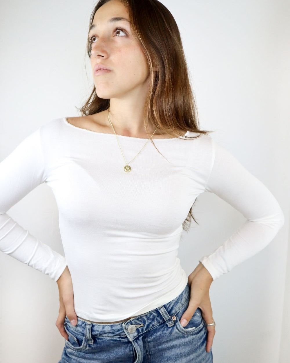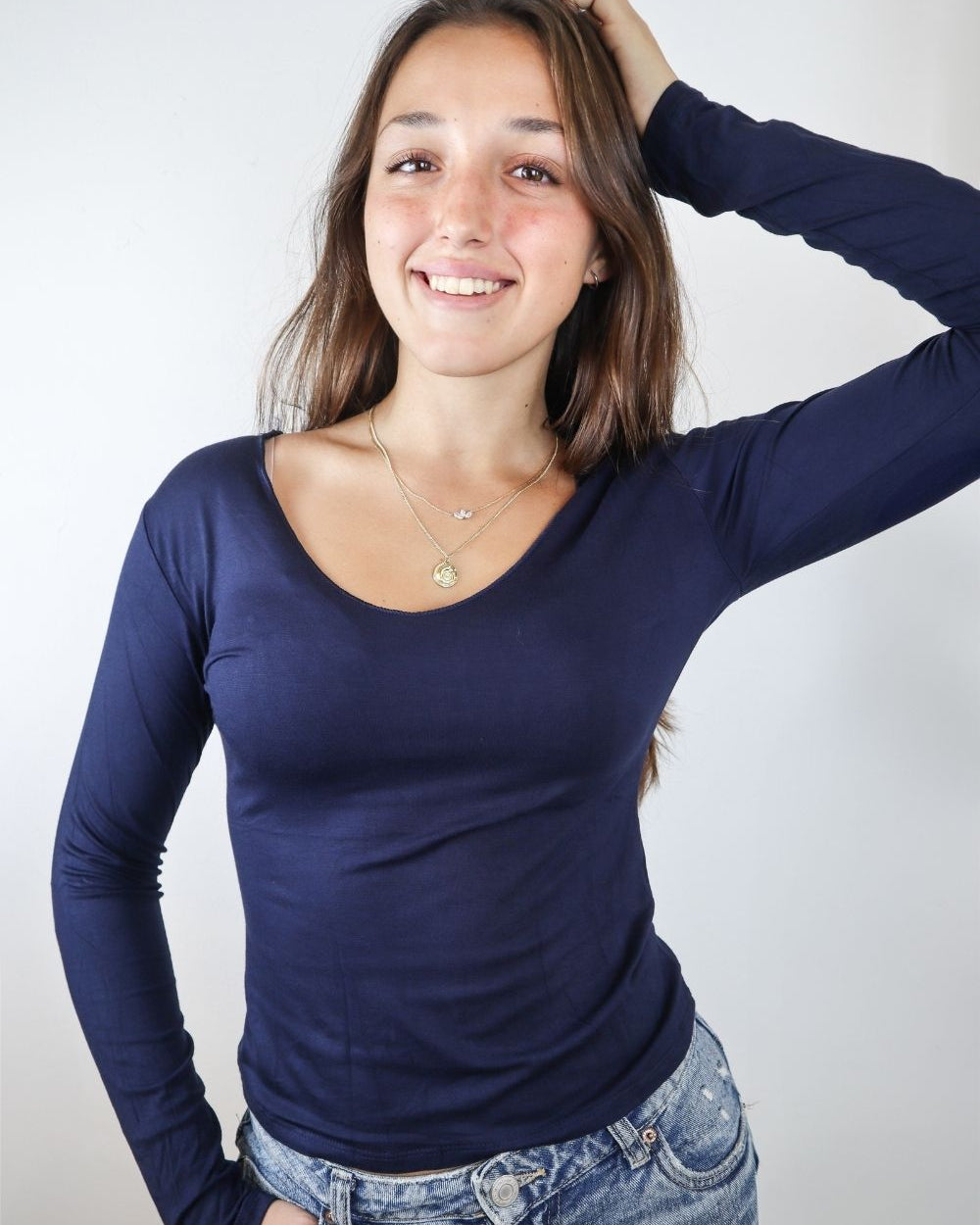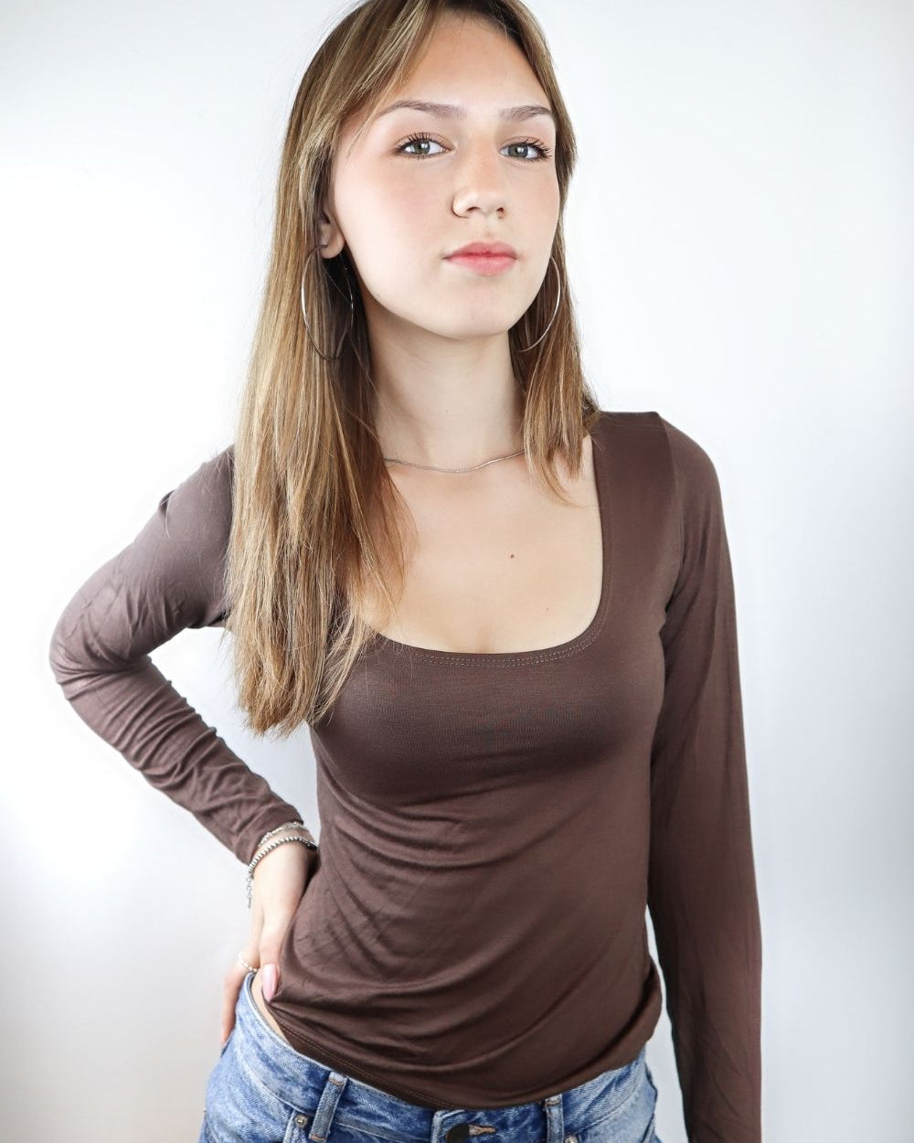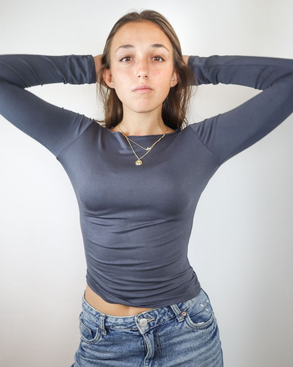 וי גזור קצרה במותן שרוול ארוך עם כפפה