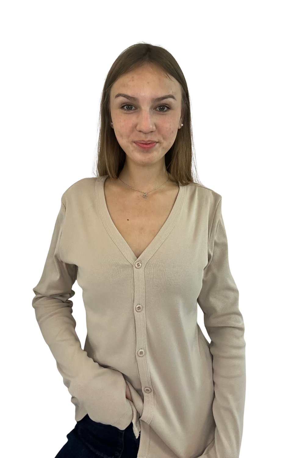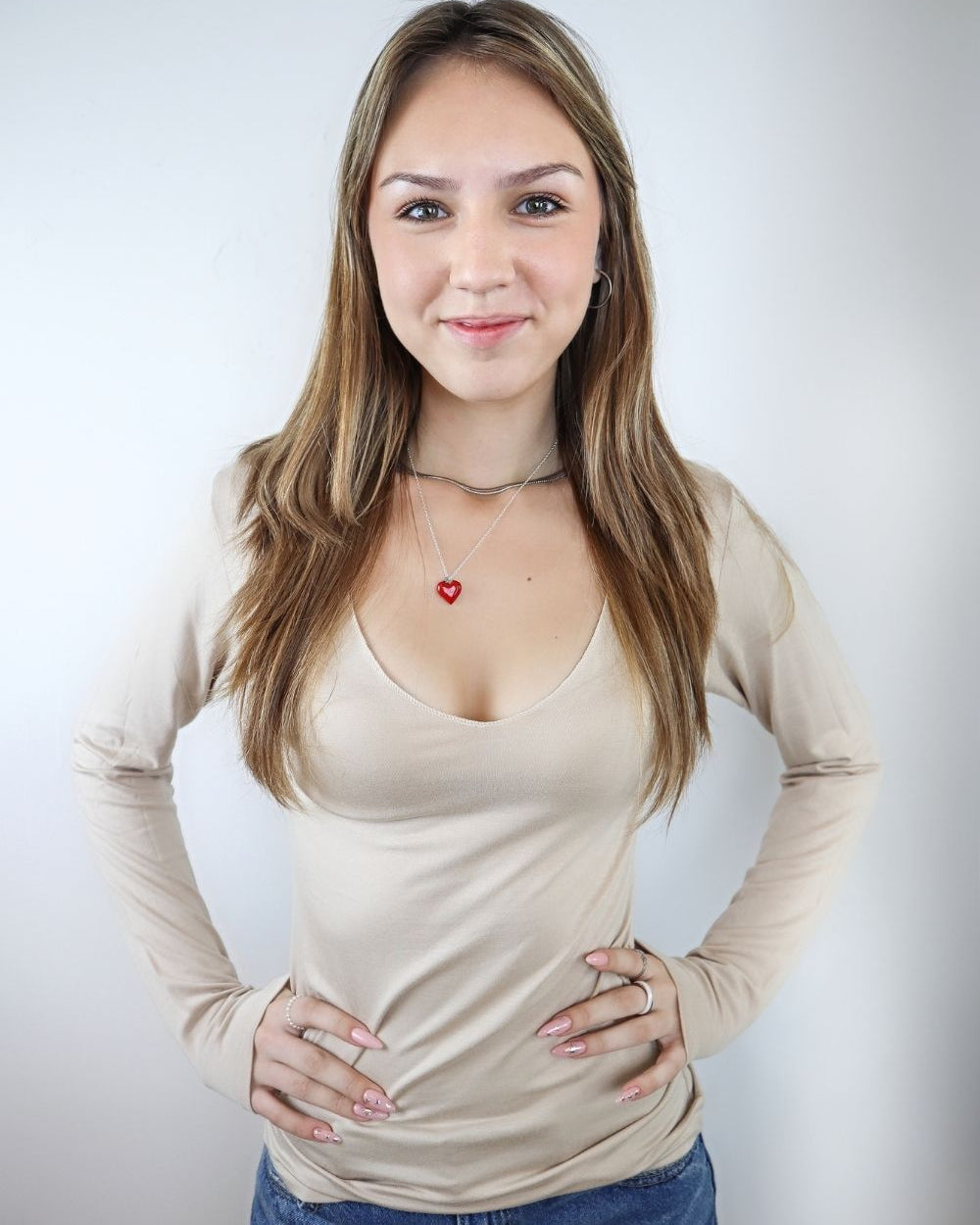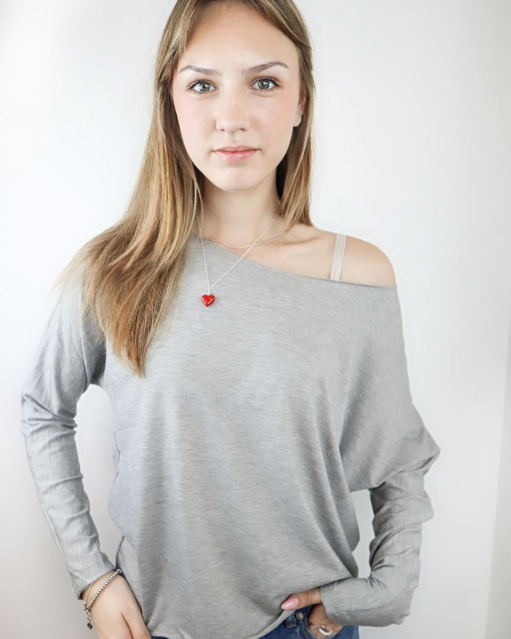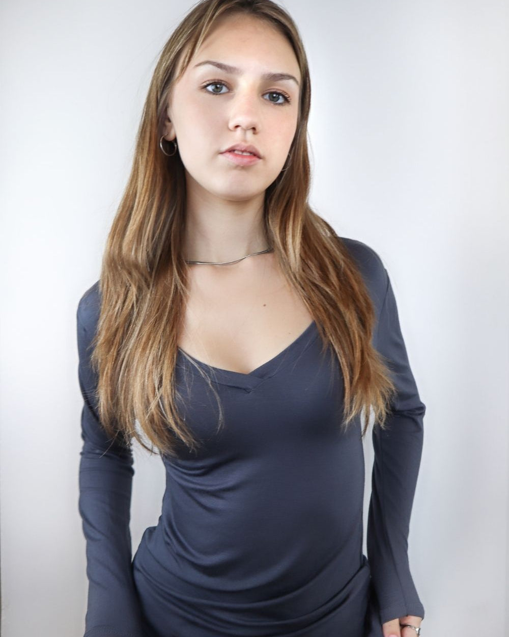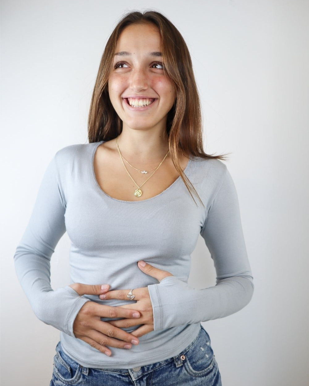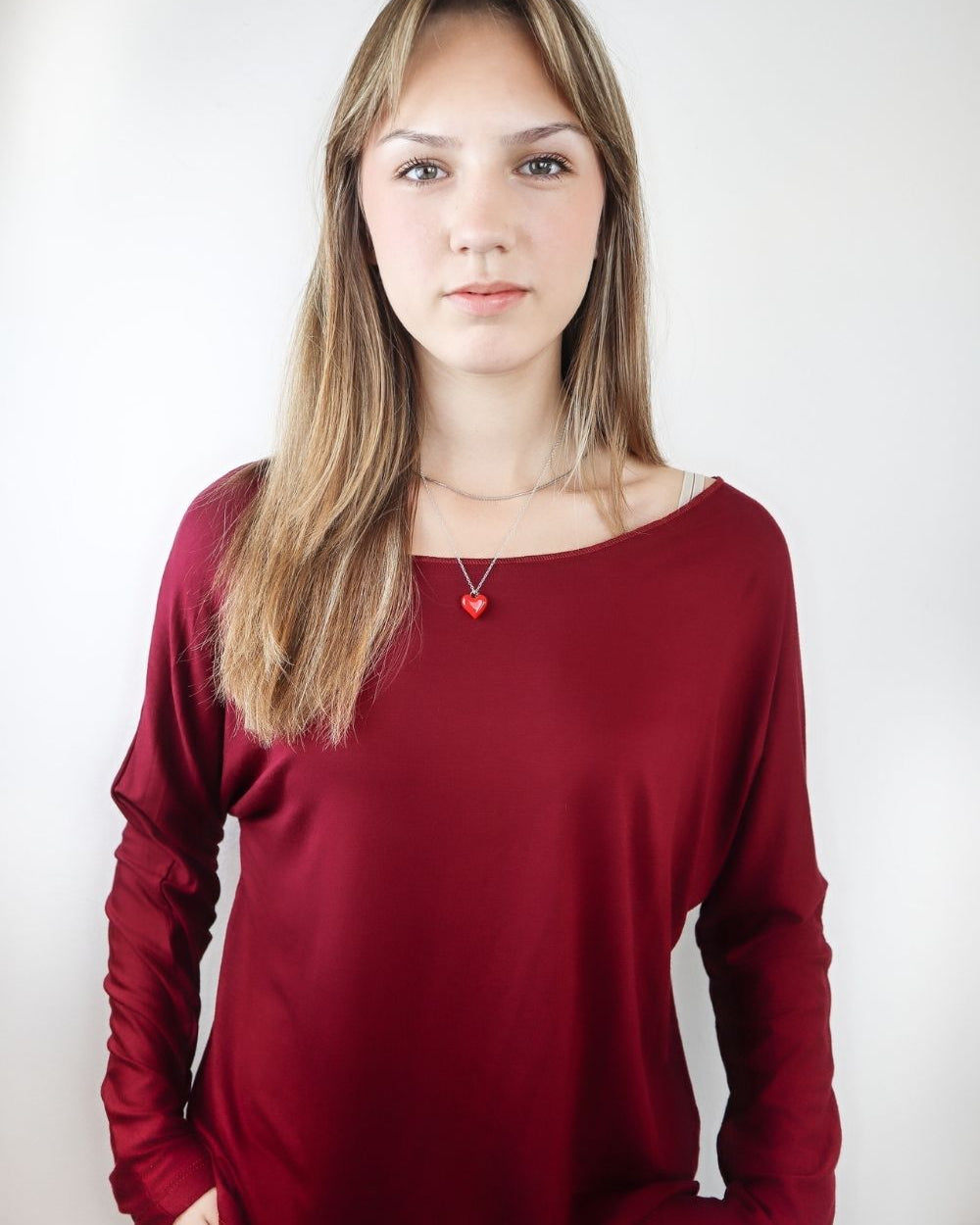 וי גזור קצרה במותן שרוול ארוך עם כפפה