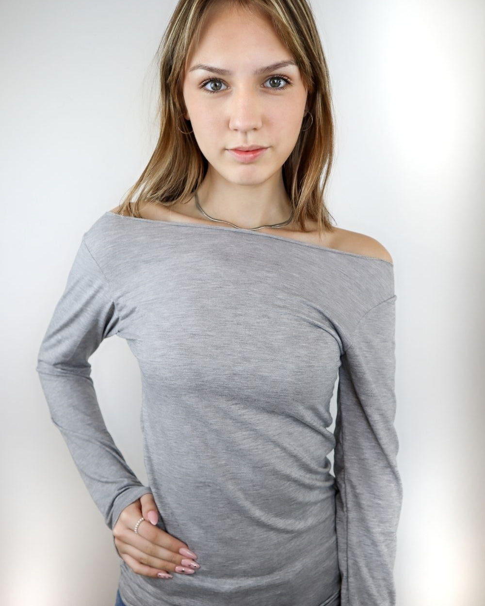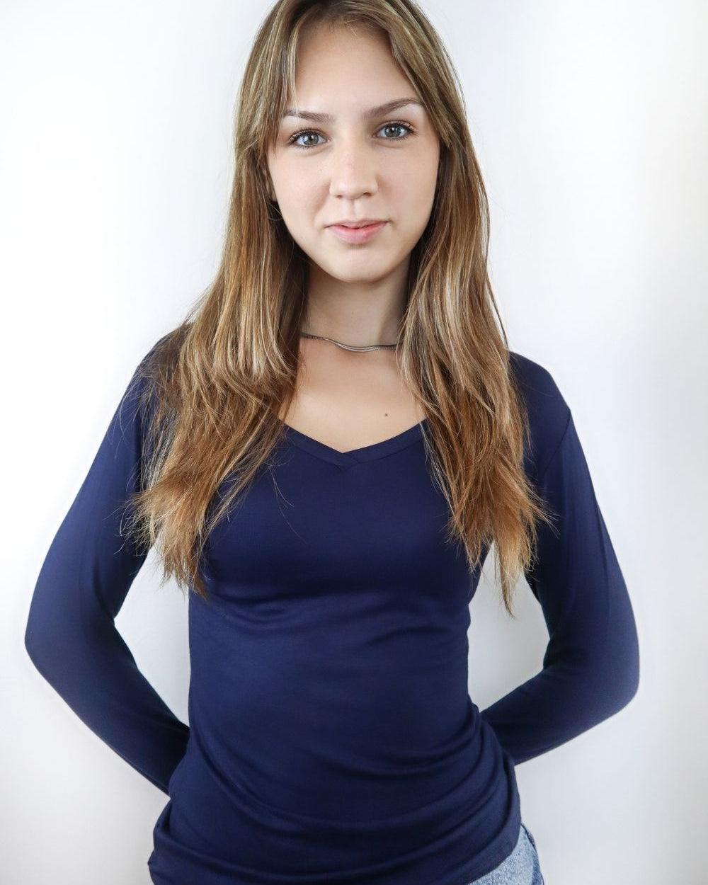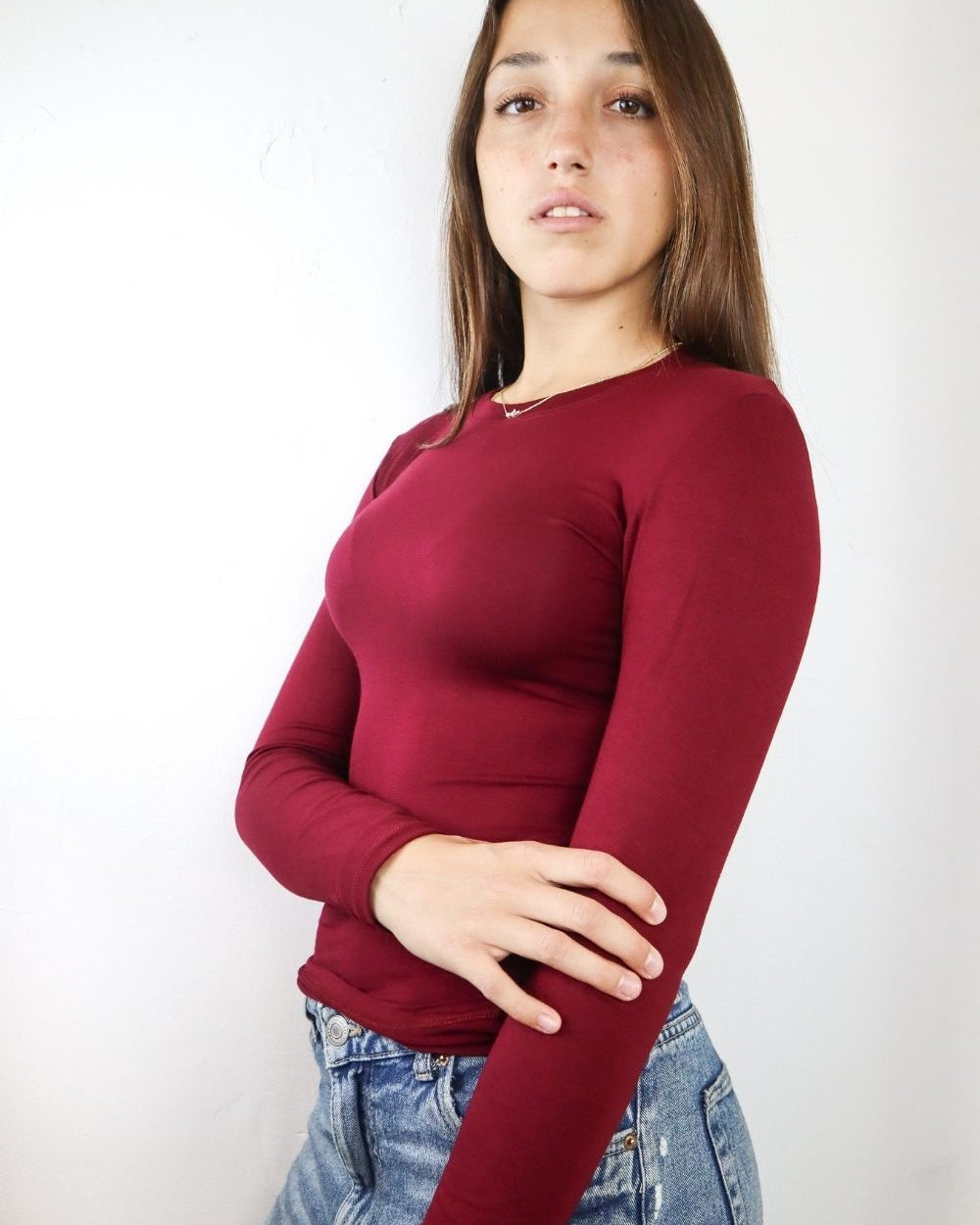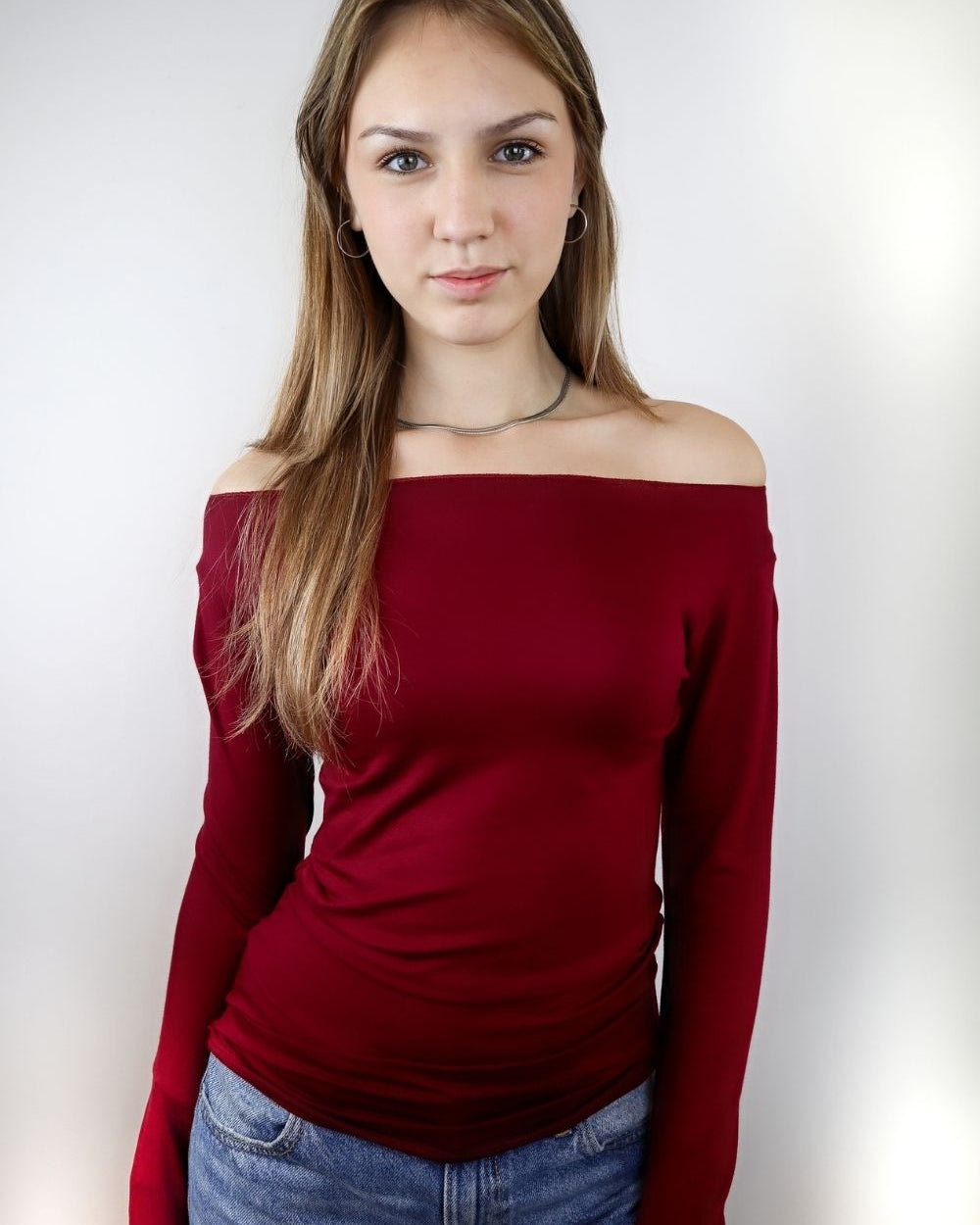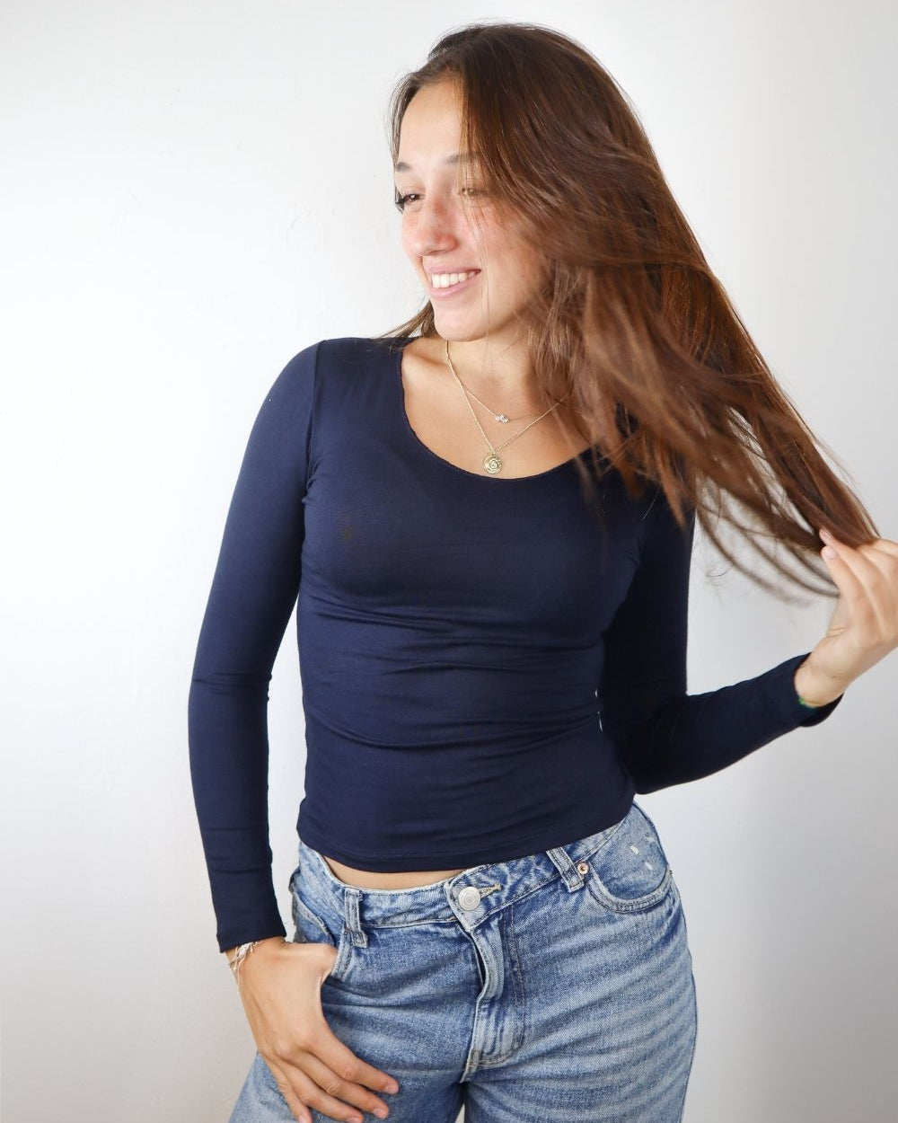 וי גזור קצרה במותן שרוול ארוך עם כפפה