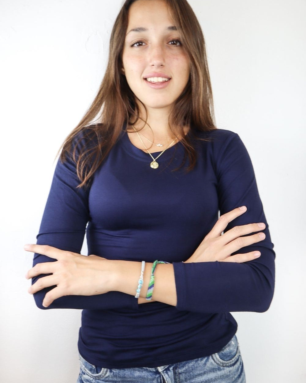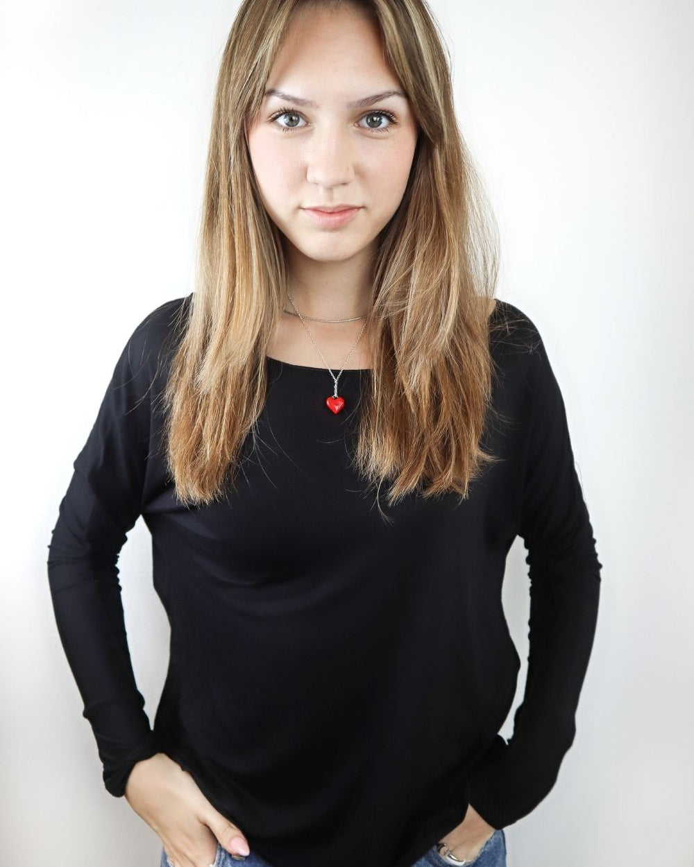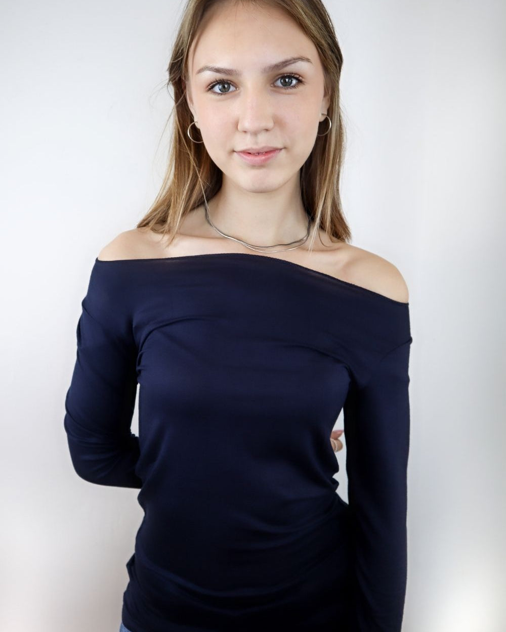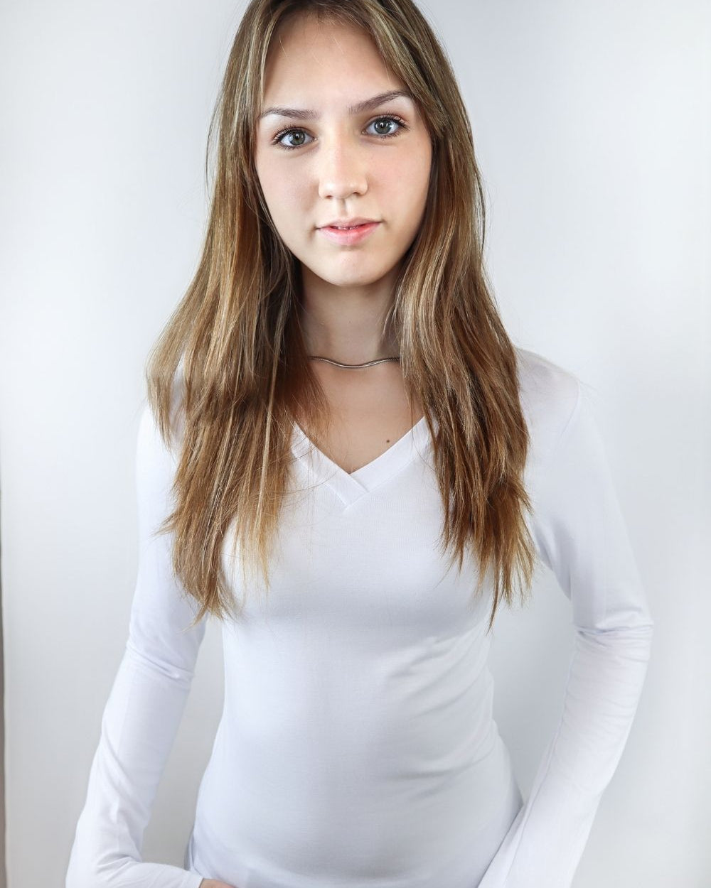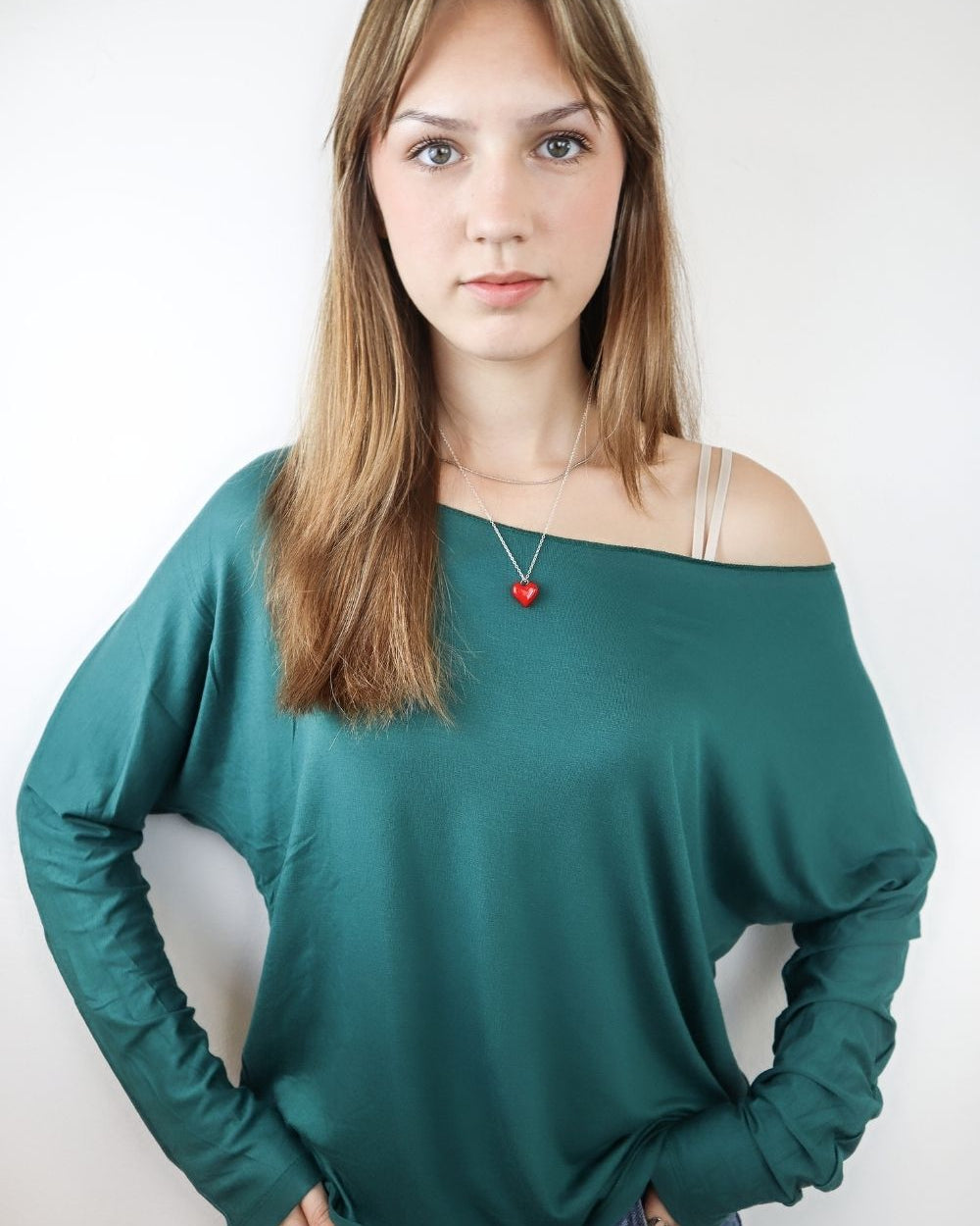 וי גזור קצרה במותן שרוול ארוך עם כפפה