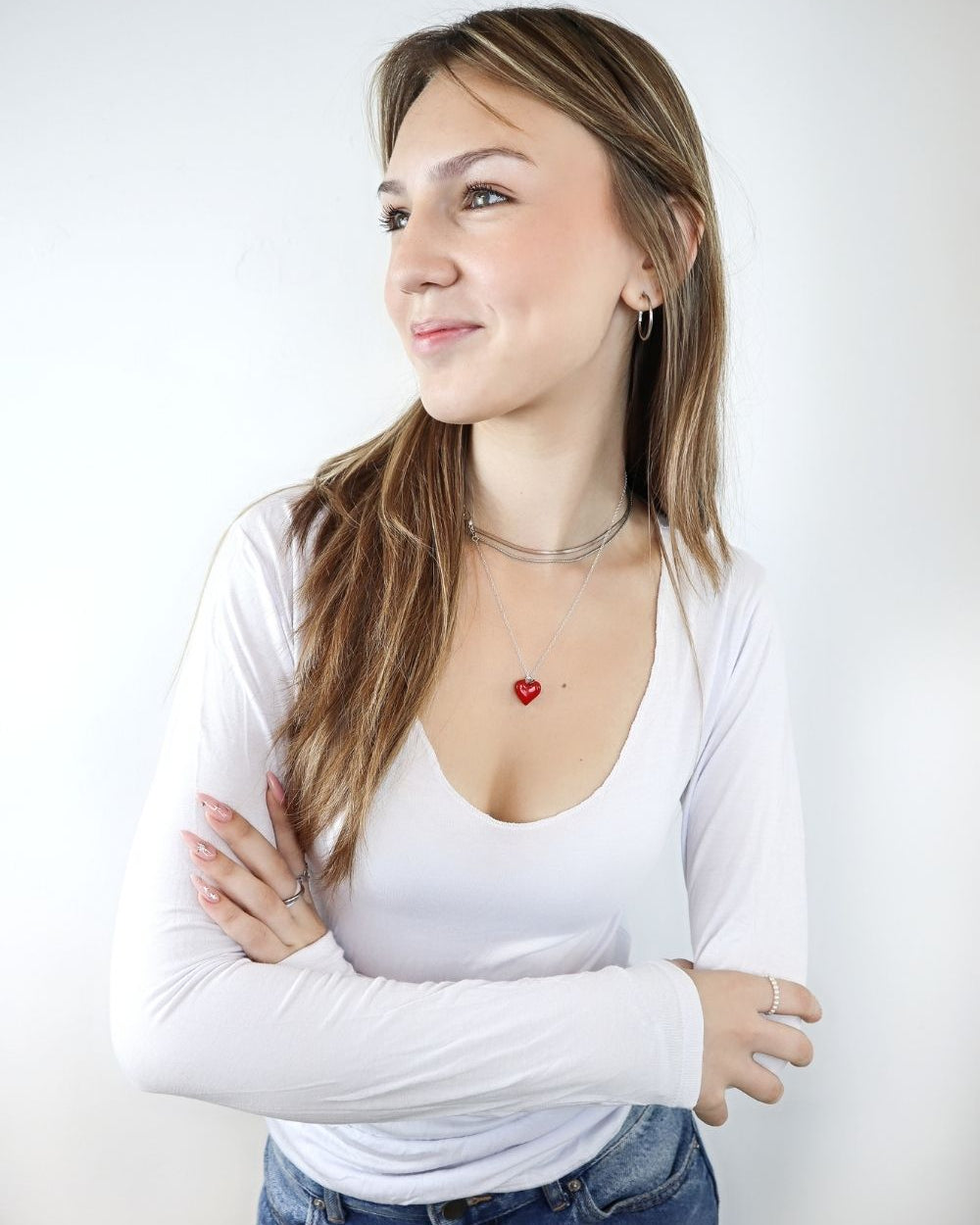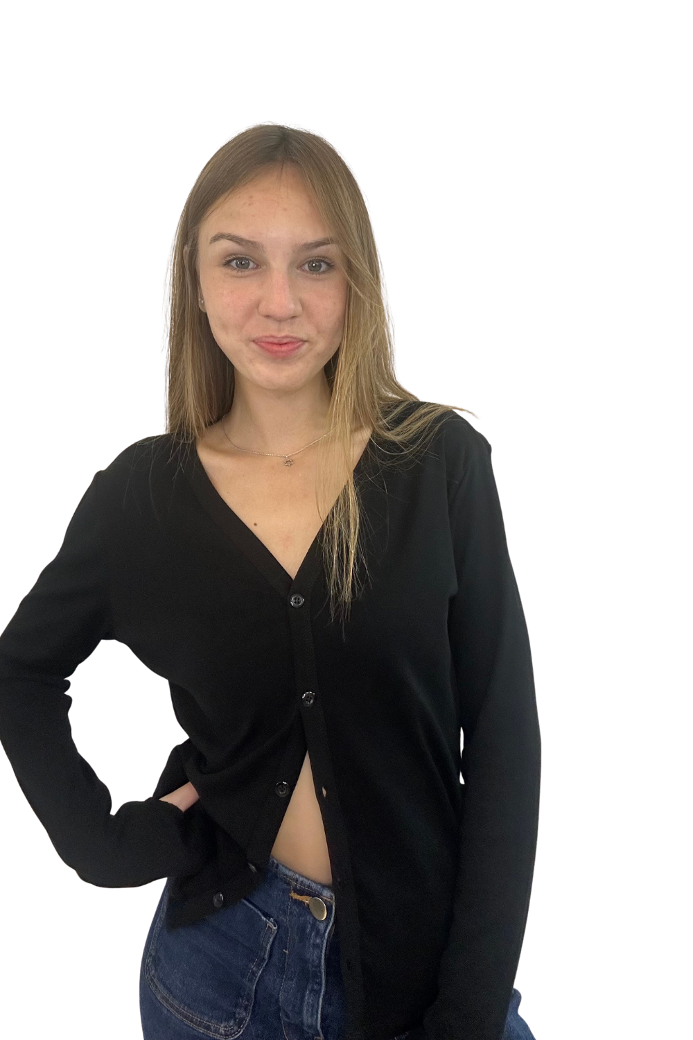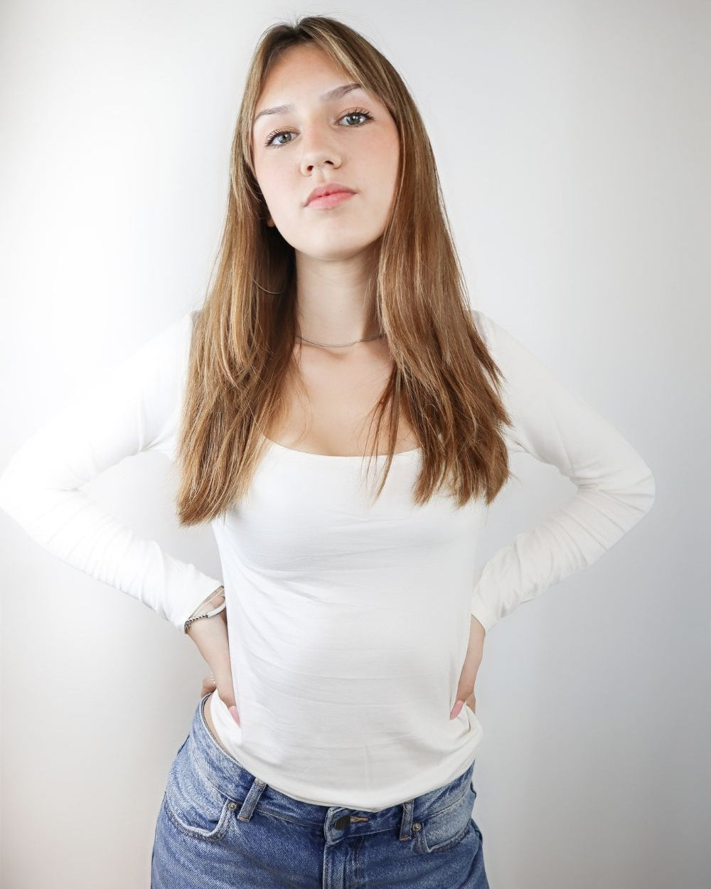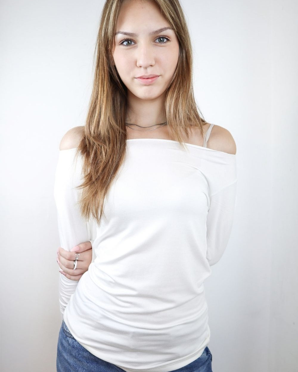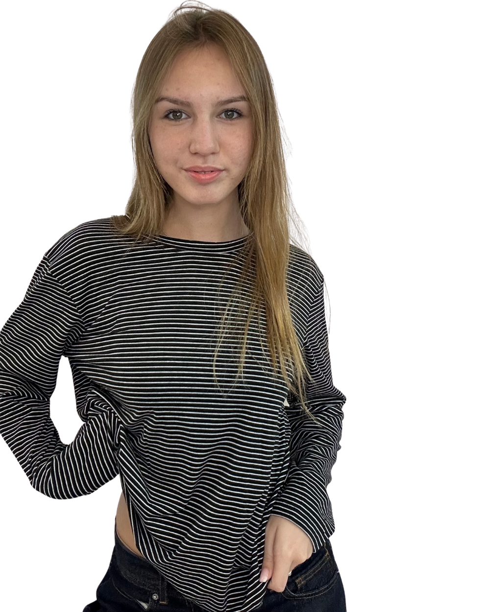וי גזור קצרה במותן שרוול ארוך עם כפפה