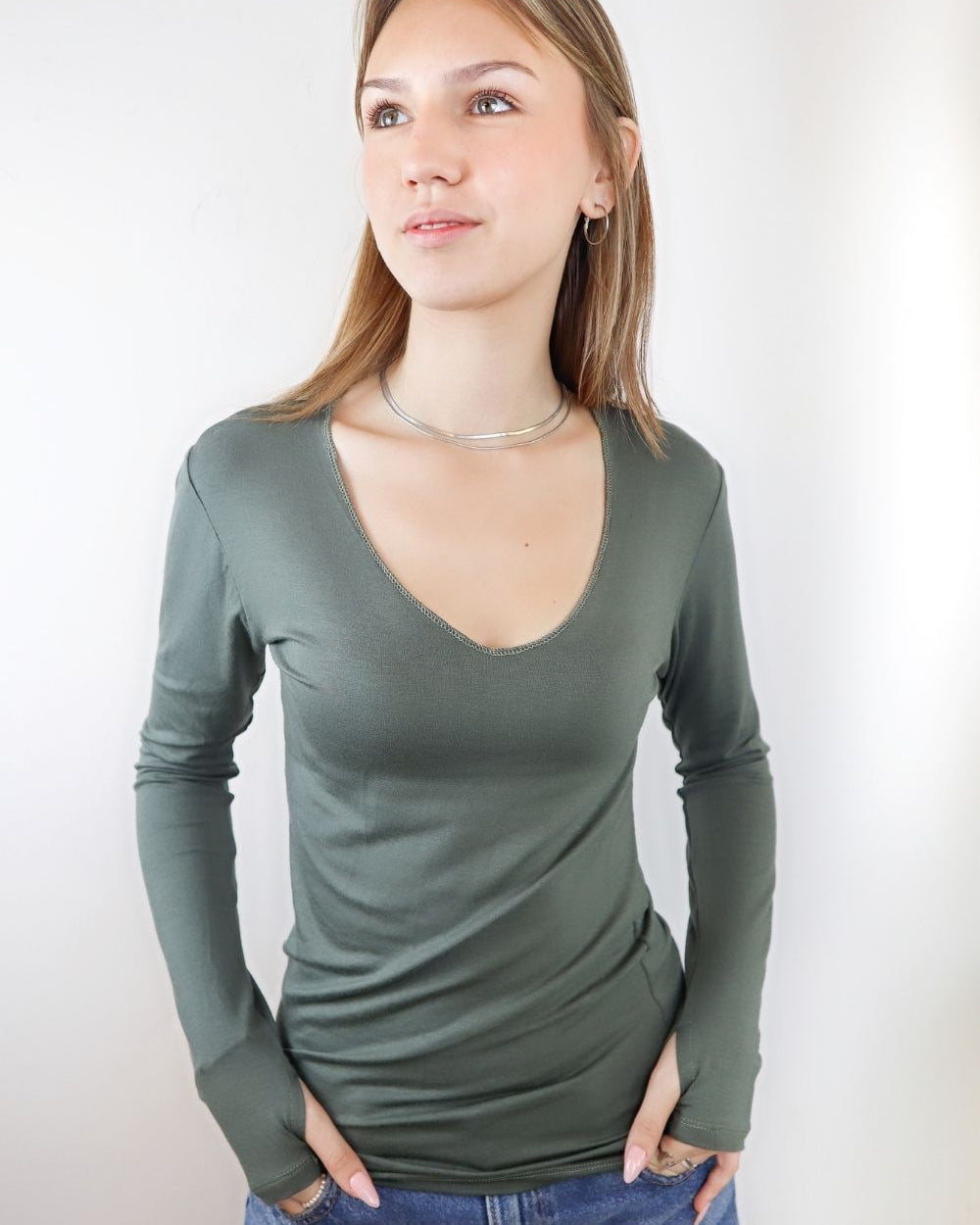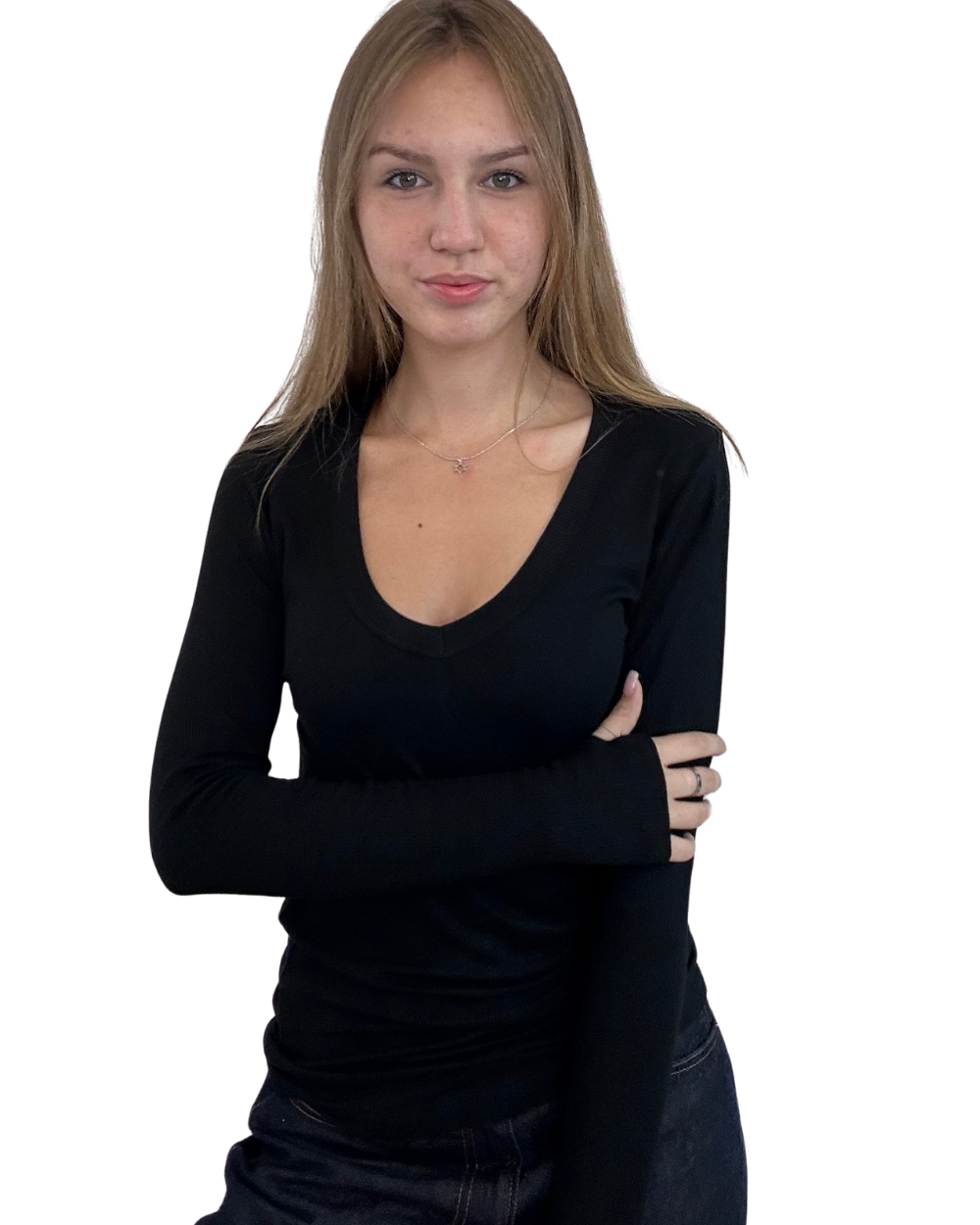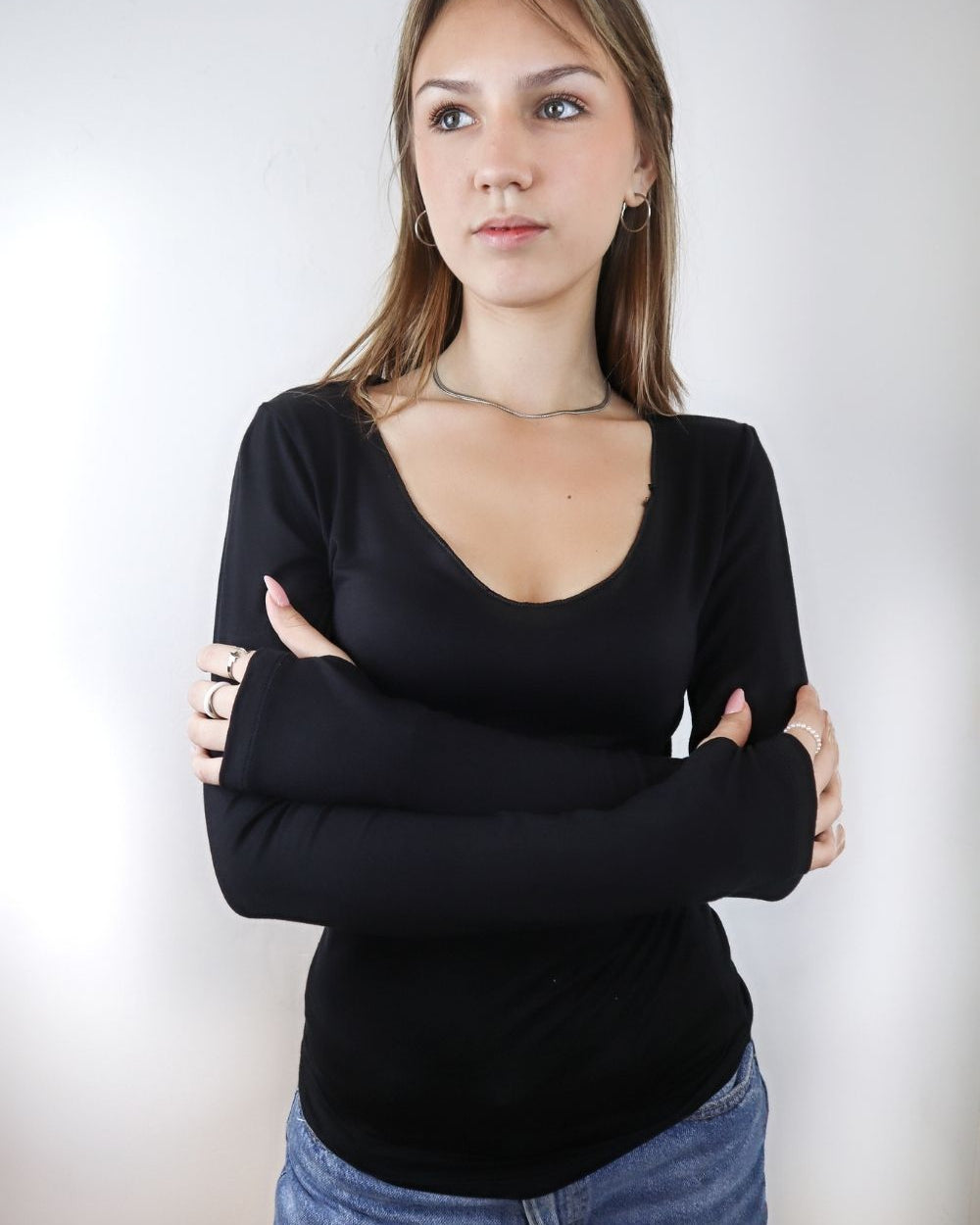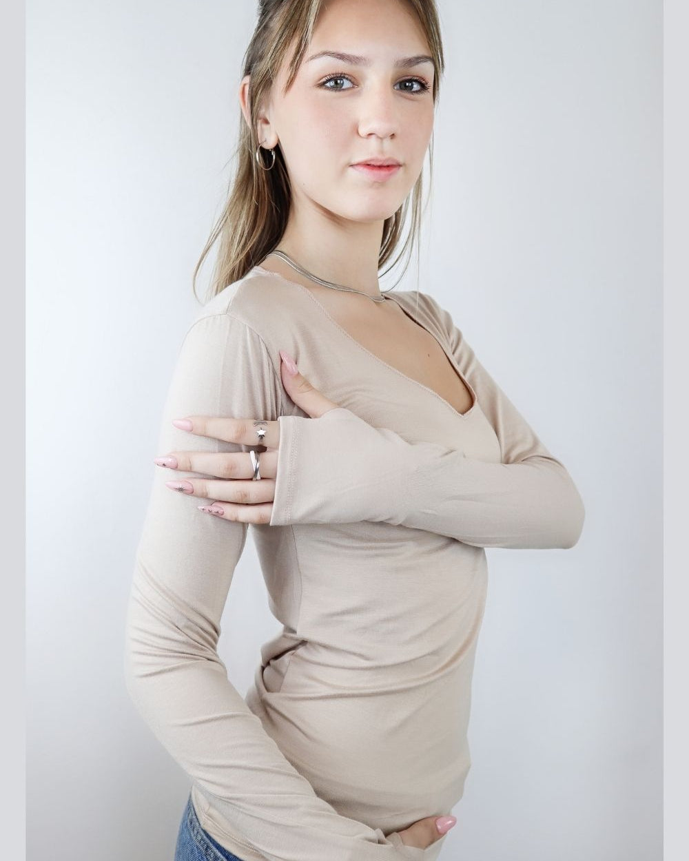 וי גזור ארוכה מותן שרוול ארוך עם כפפה