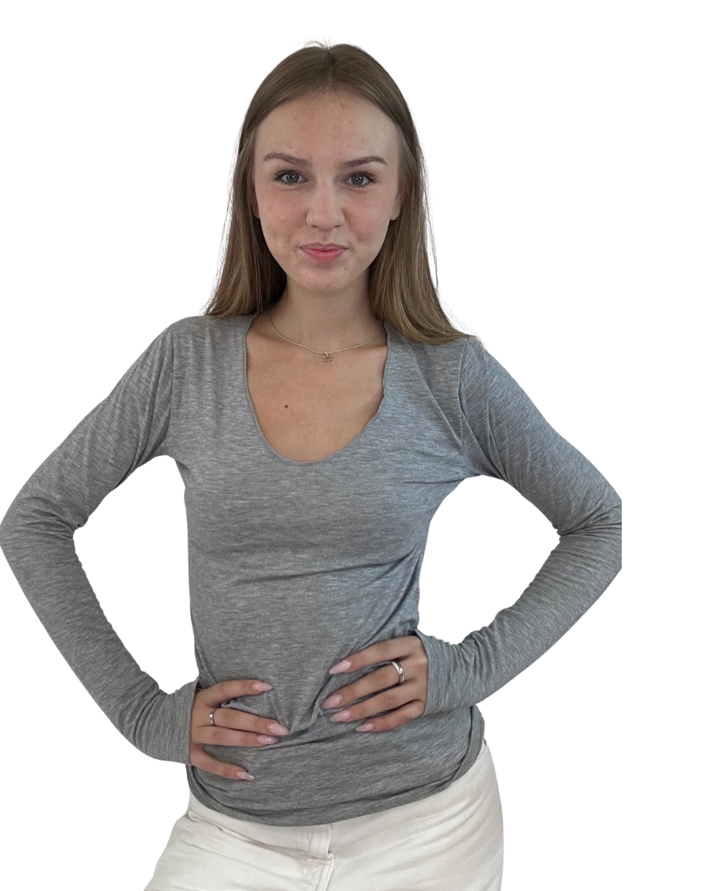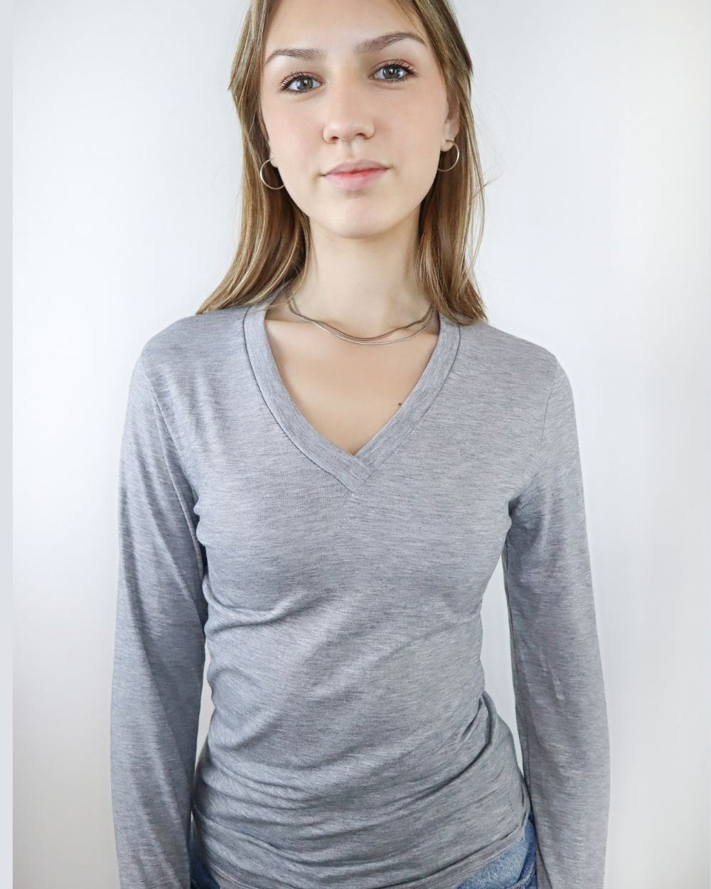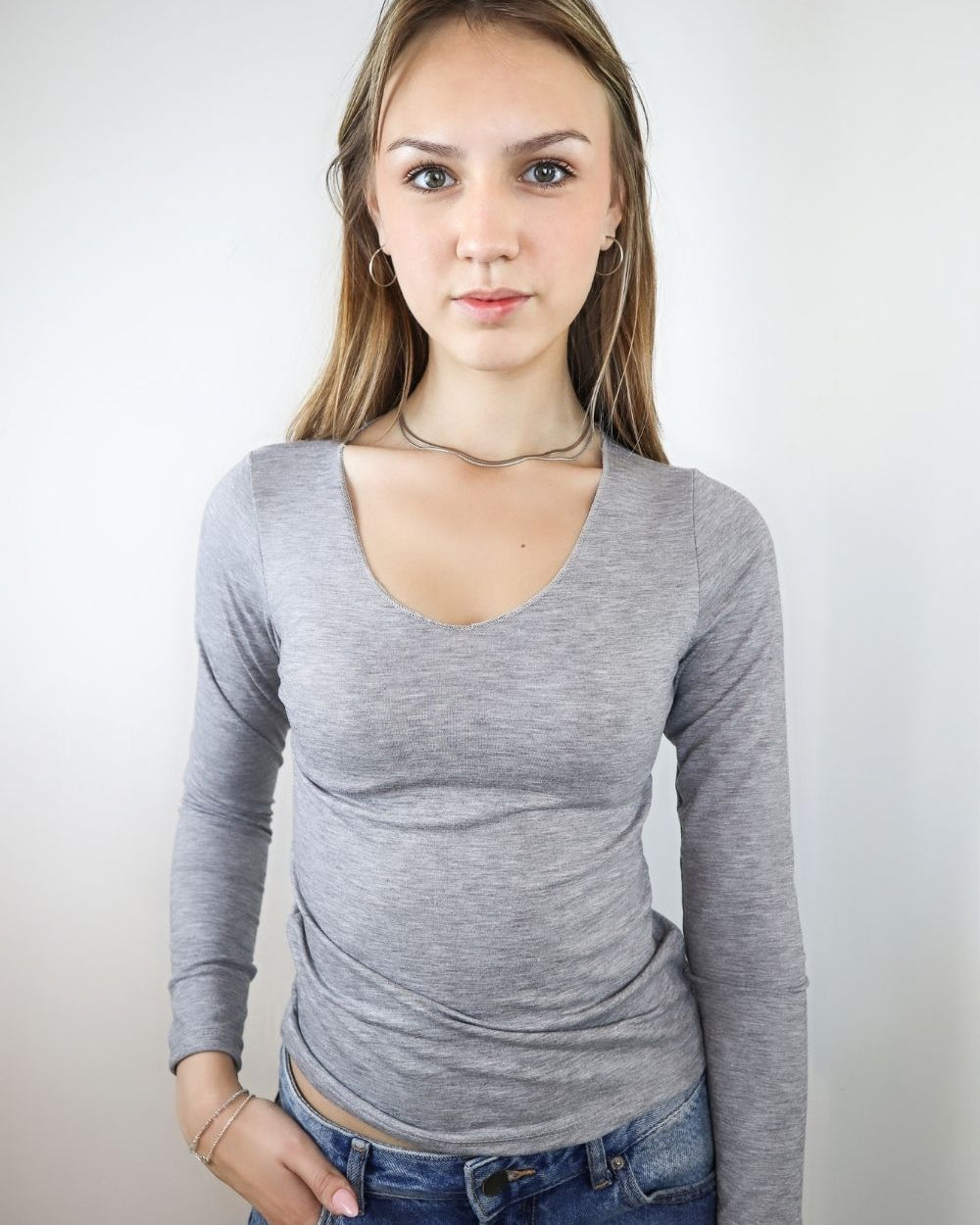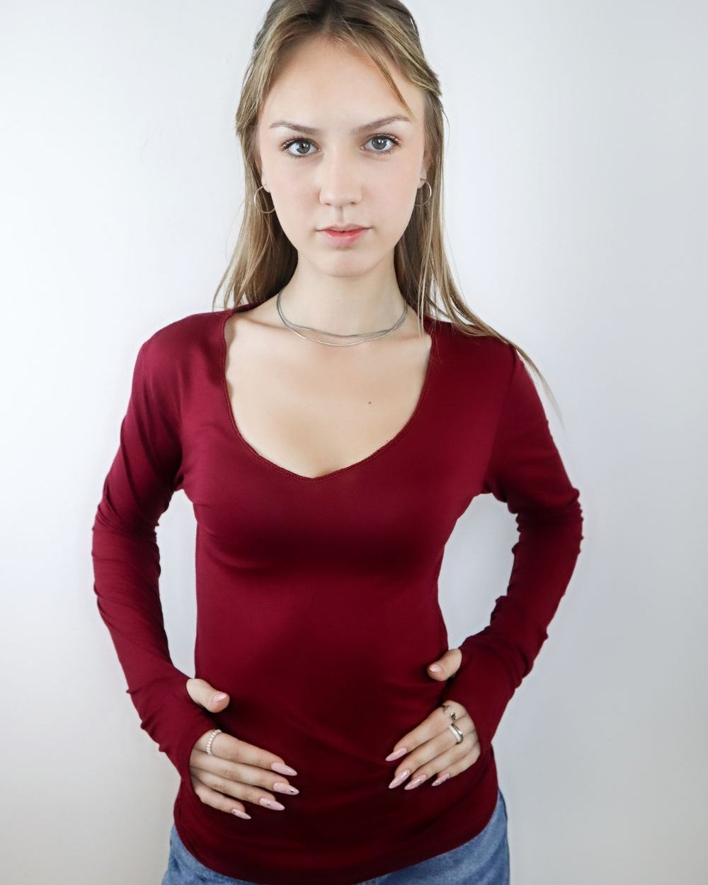 וי גזור ארוכה מותן שרוול ארוך עם כפפה