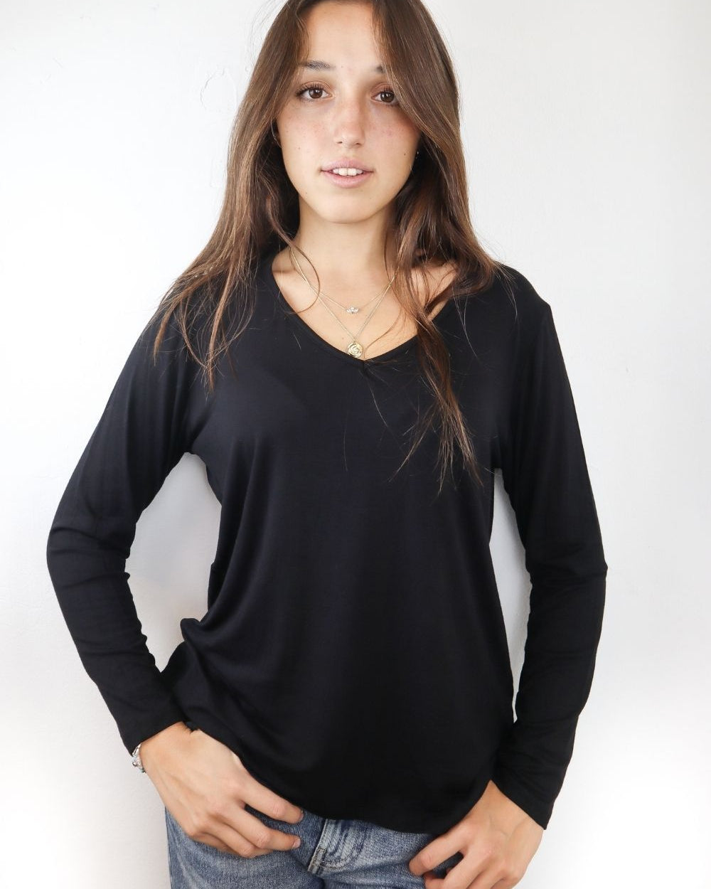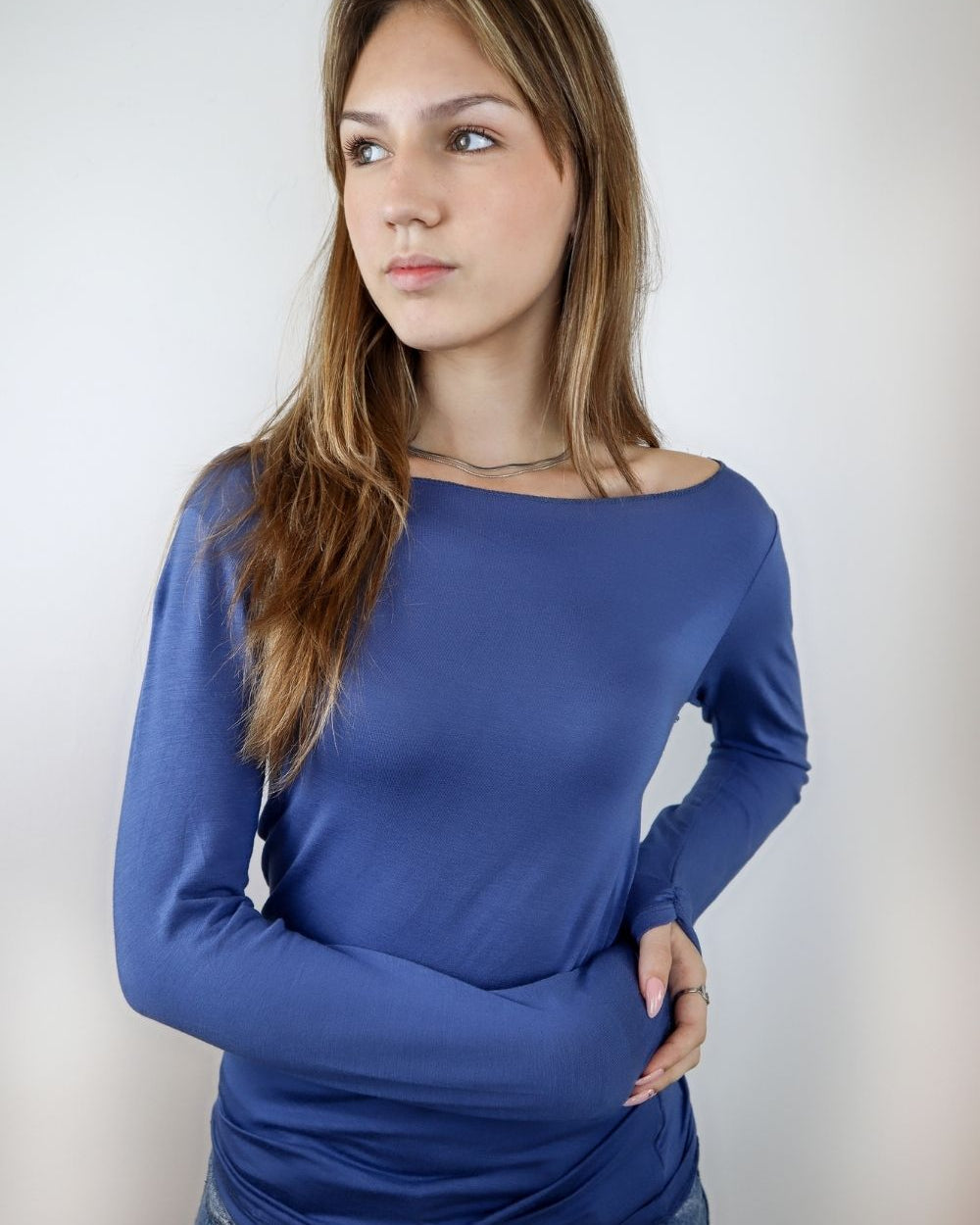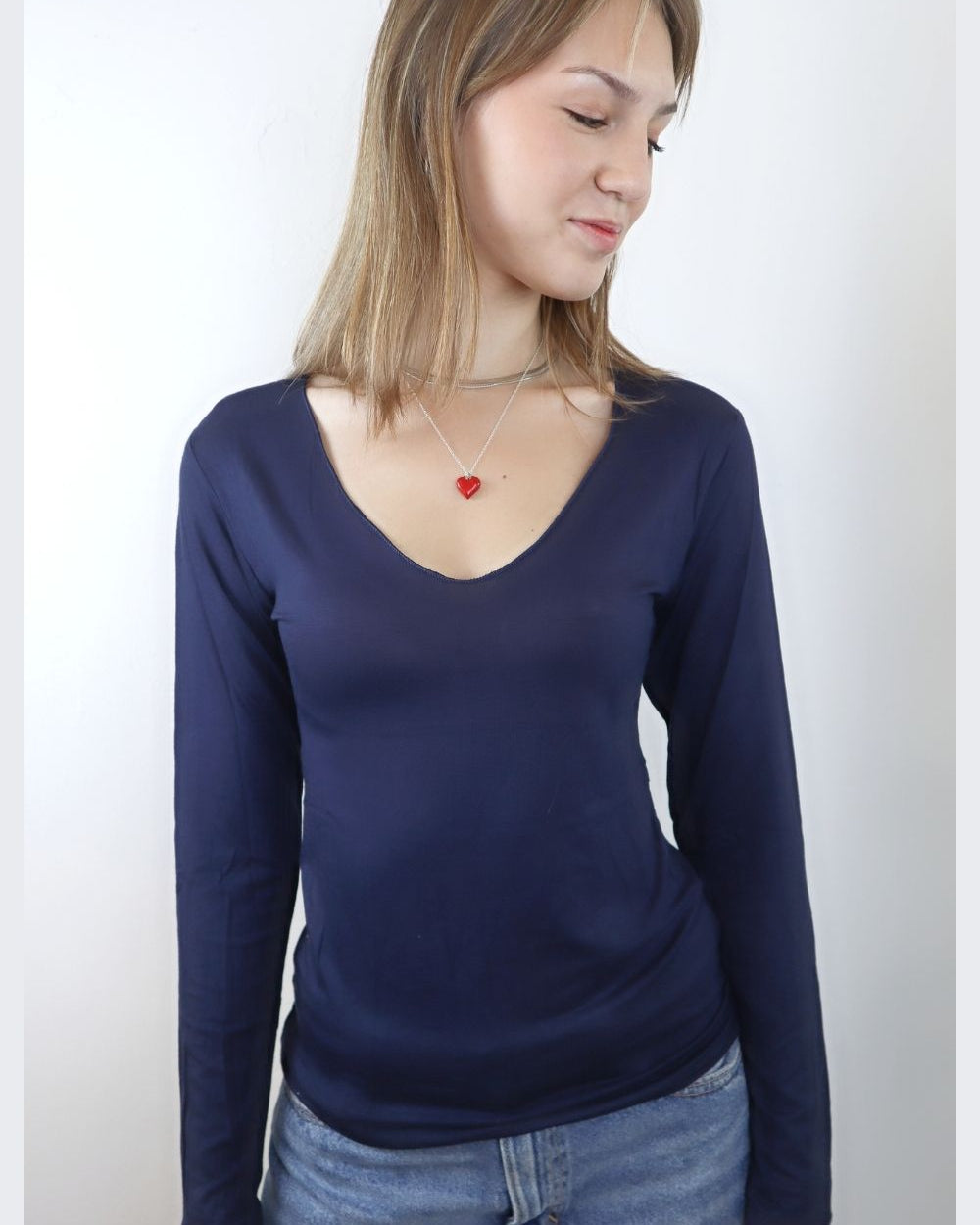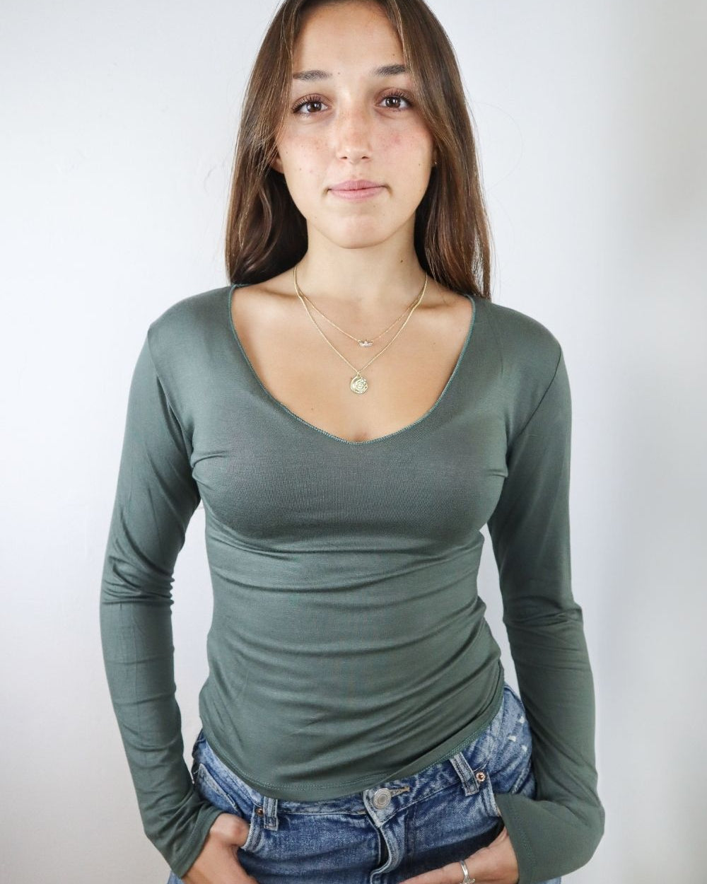 וי גזור ארוכה מותן שרוול ארוך עם כפפה
