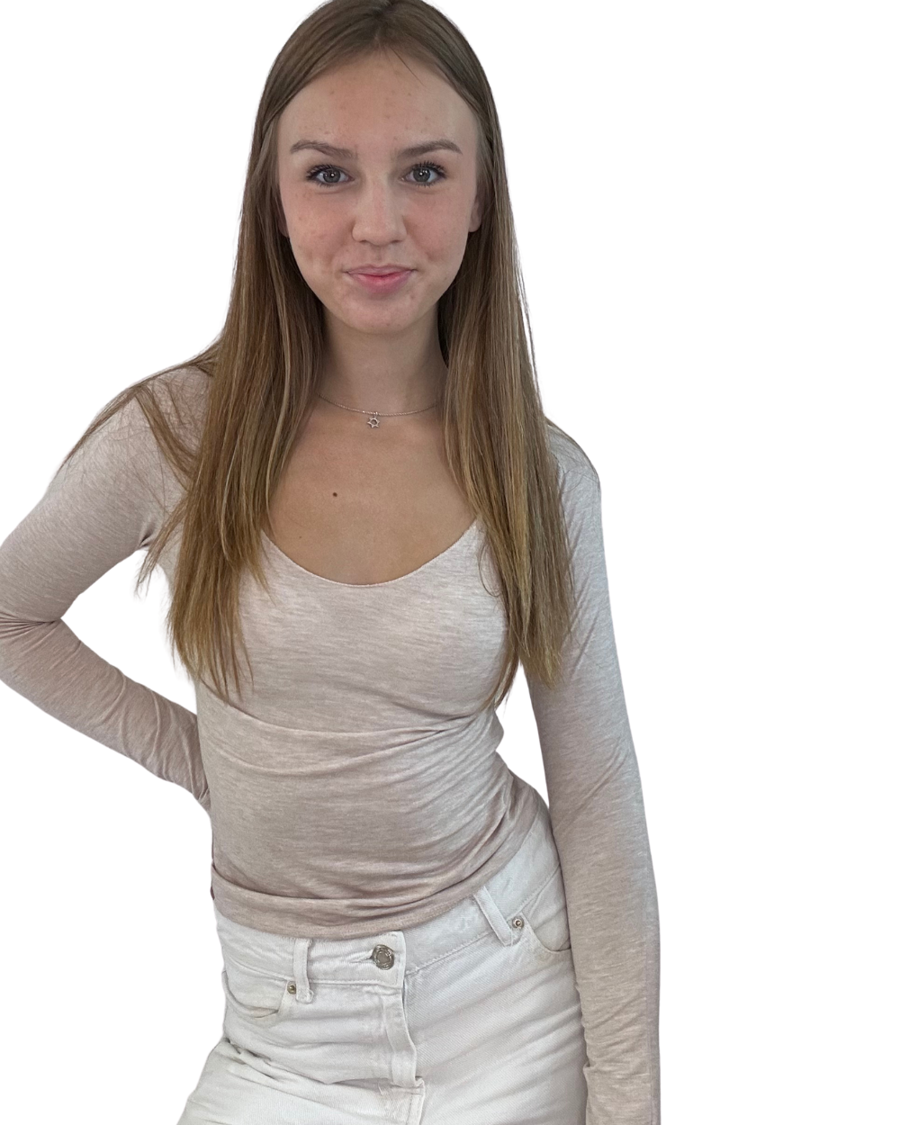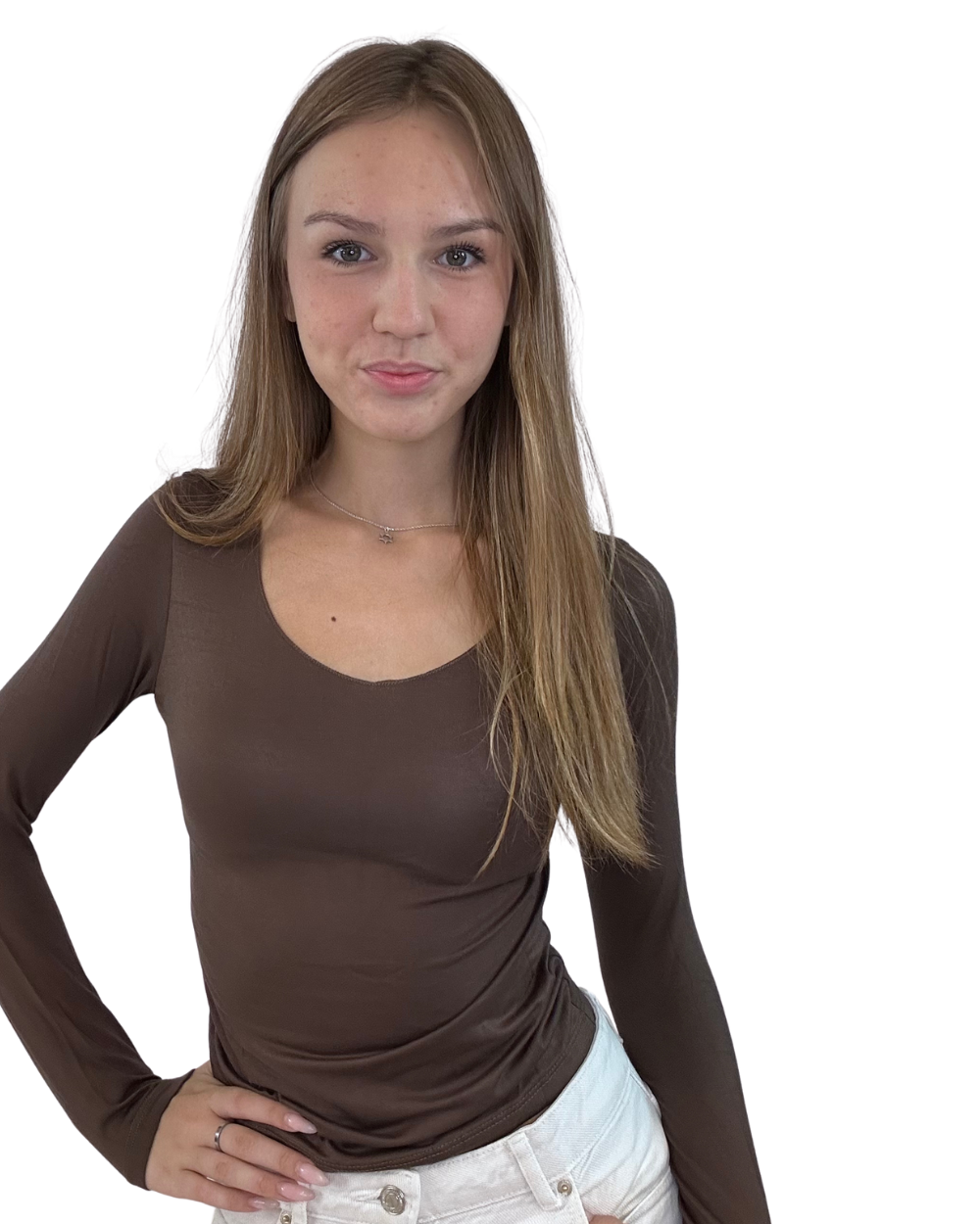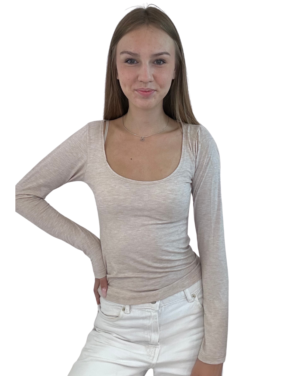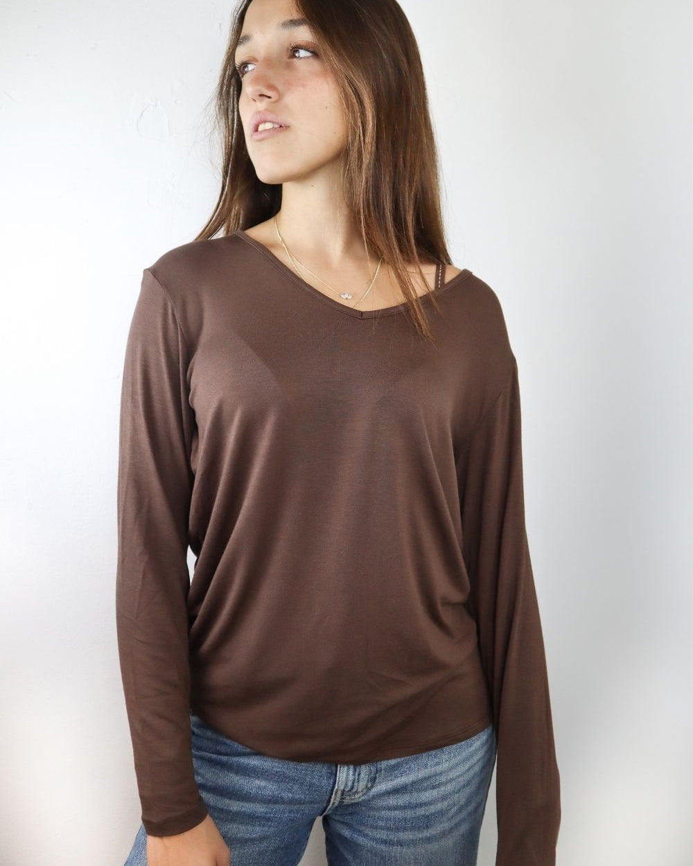 וי גזור ארוכה מותן שרוול ארוך עם כפפה