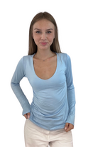 חולצה דגם וי גזור שרוול ארוך - ארוך במותן