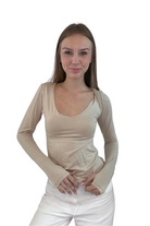 חולצה עם מחשוף סטייל בעלת טוויסט כפפה (מקום לאצבע) המדגיש נוחות מרבית והשלמת המראה