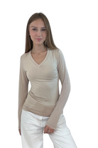 חולצת דגם וי תפר שרוול ארוך - ארוכה במותן