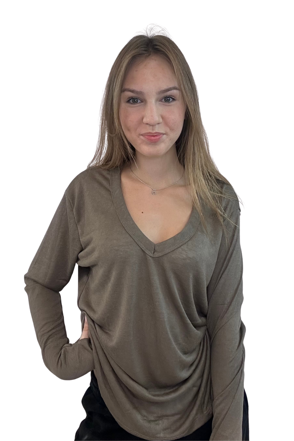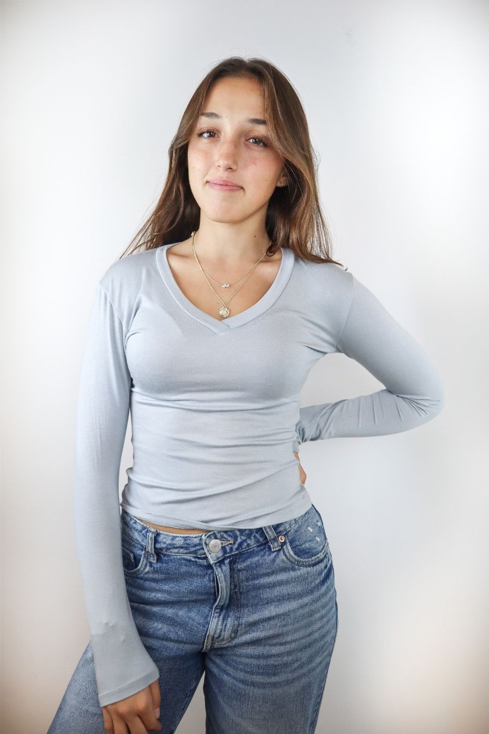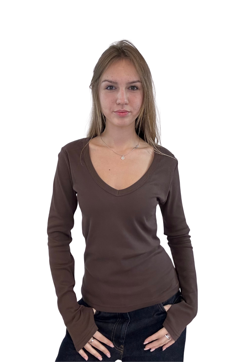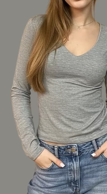 וי גזור ארוכה במותן שרוול ארוך