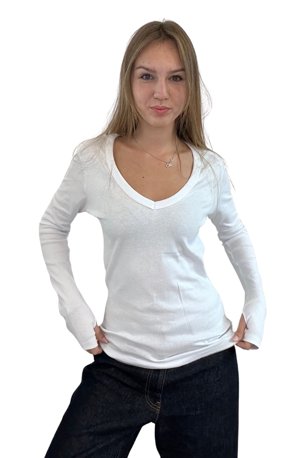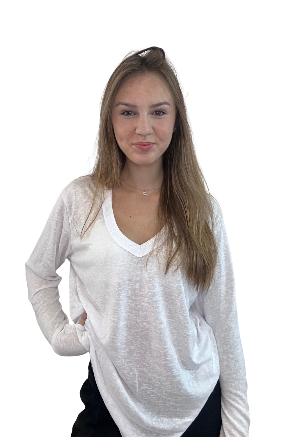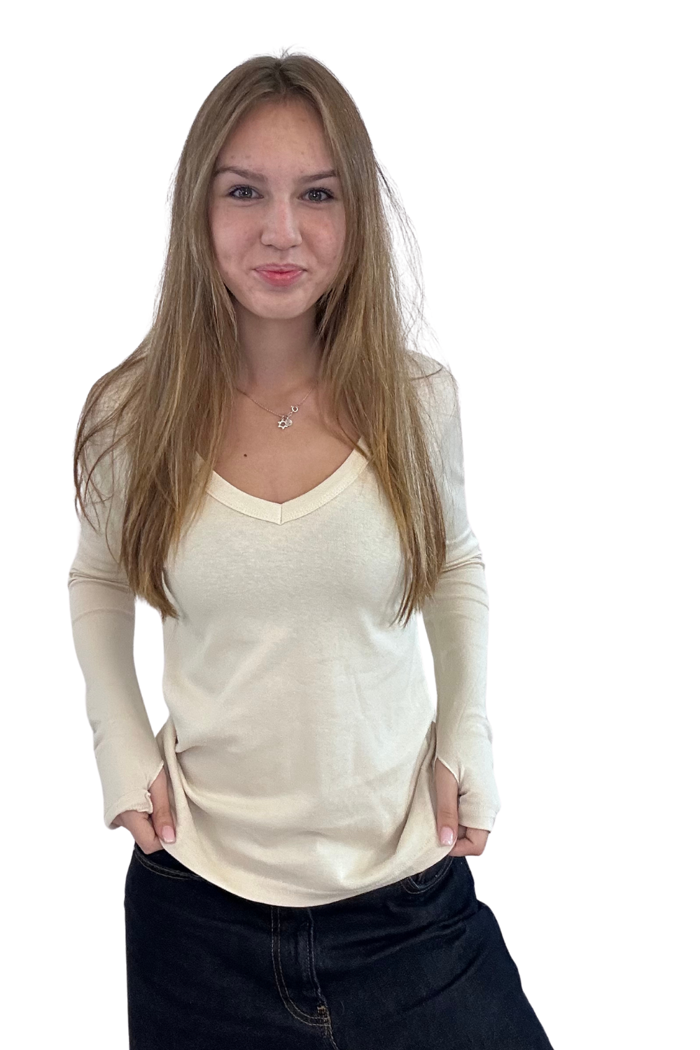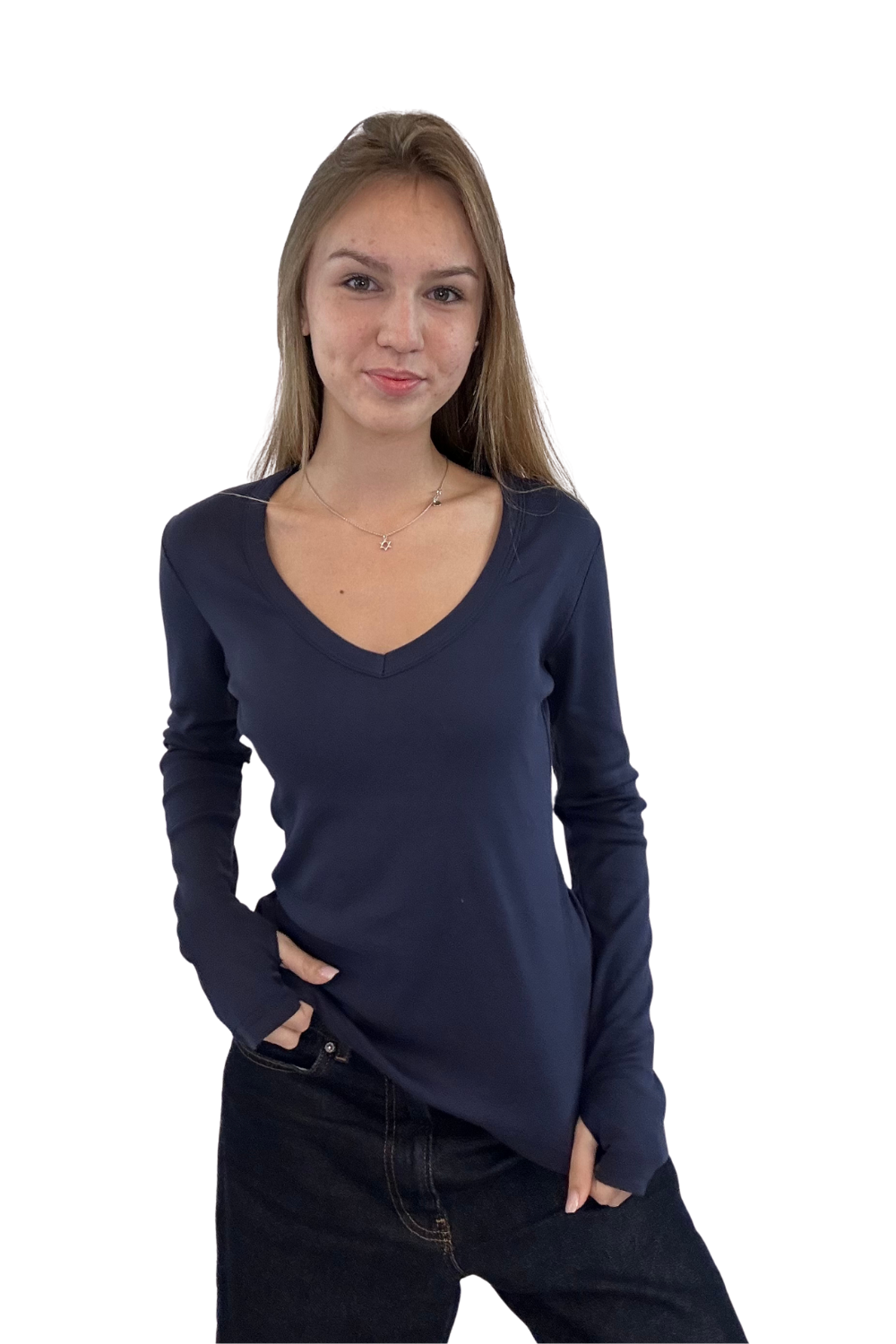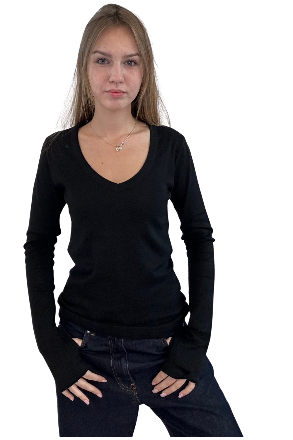 וי גזור מידות 12-14 שרוול ארוך