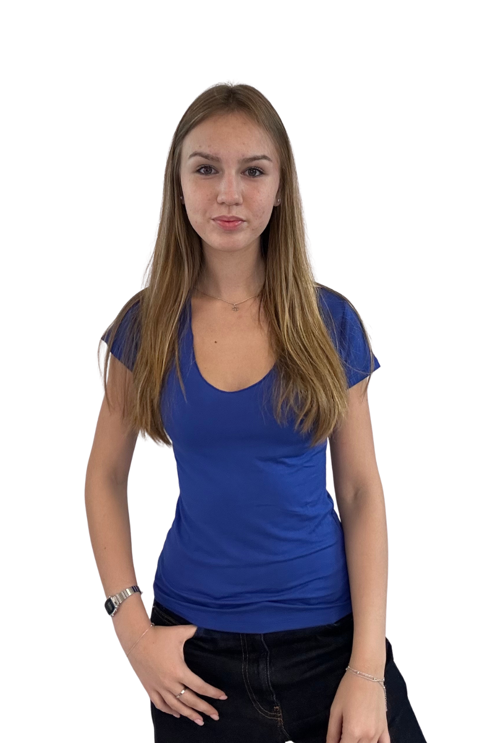 חולצה עם מחשוף גזור מדגישה מראה קלאסי בגרסה מרעננת